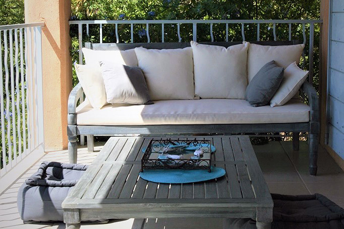 One enters the villa onto the level which has 2 of the 4 bedrooms, both of which open onto the sun terrace, where there is also a comfortable outdoor sofa set.