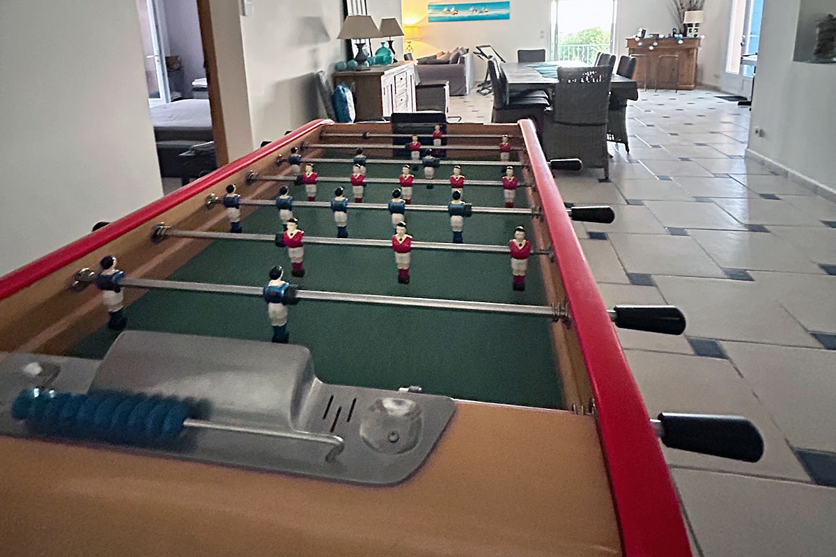 Table tennis, pétanque, electric piano, play station, board games, toys, books, Hi-Fi system, mobile speakers