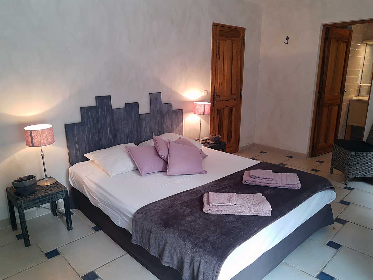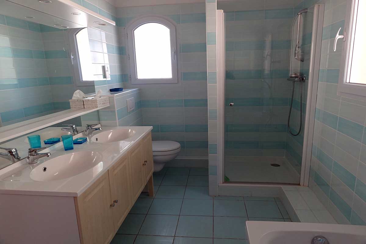 Bedroom 3 - Air-conditioning, 160cm double bed, ensuite bathroom, with bath, shower and wc. Access to small East terrace.