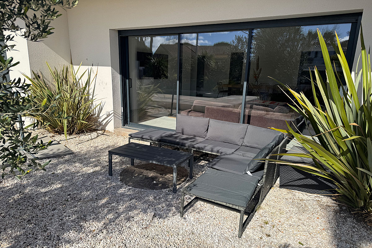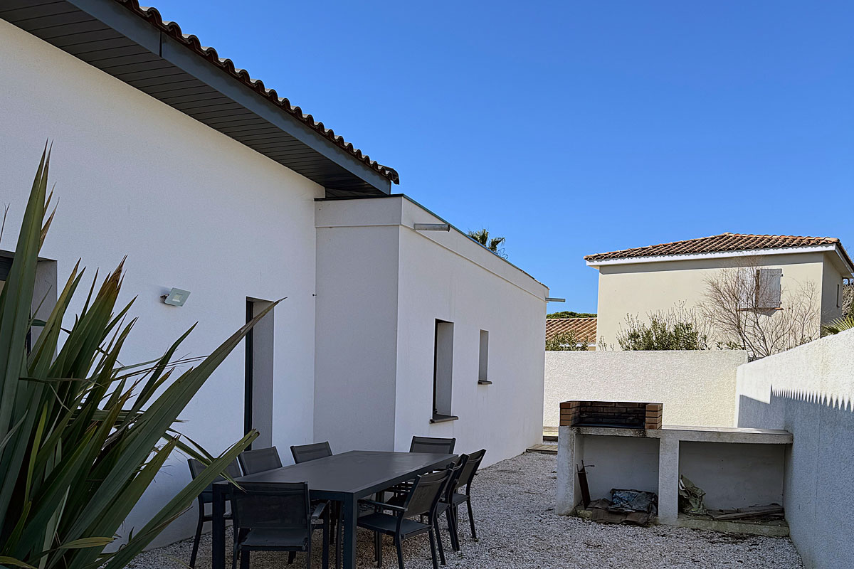 This modern villa was built purely for beach holiday rentals. Situated in a residential area just minutes walk from the beautiful Rochelongue beach, where you will find a couple of beach restaurants with sunloungers to hire and lots of unspoilt areas too.