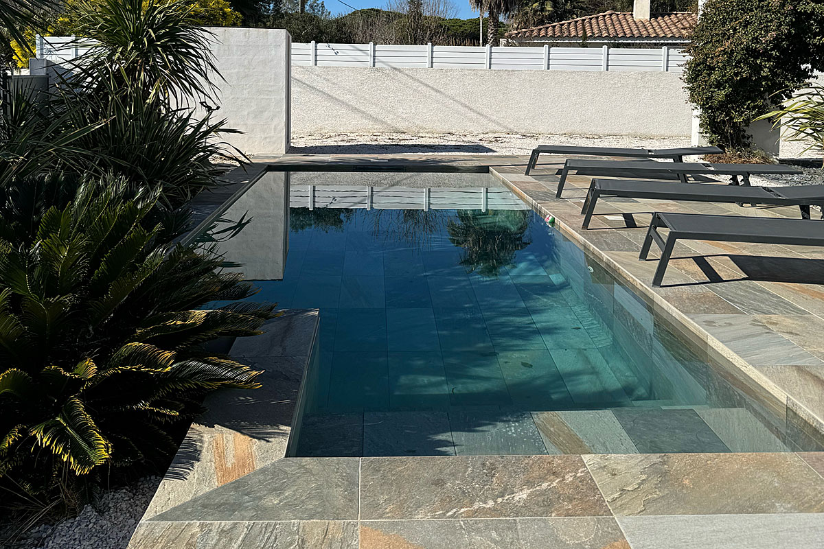 The pool which is 7m x 3 m is heated (not needed in July and August!) is beautifully tiled and the depth ranges to a maximum of 1.8m. Perfect to cool down after a trip to the beach.