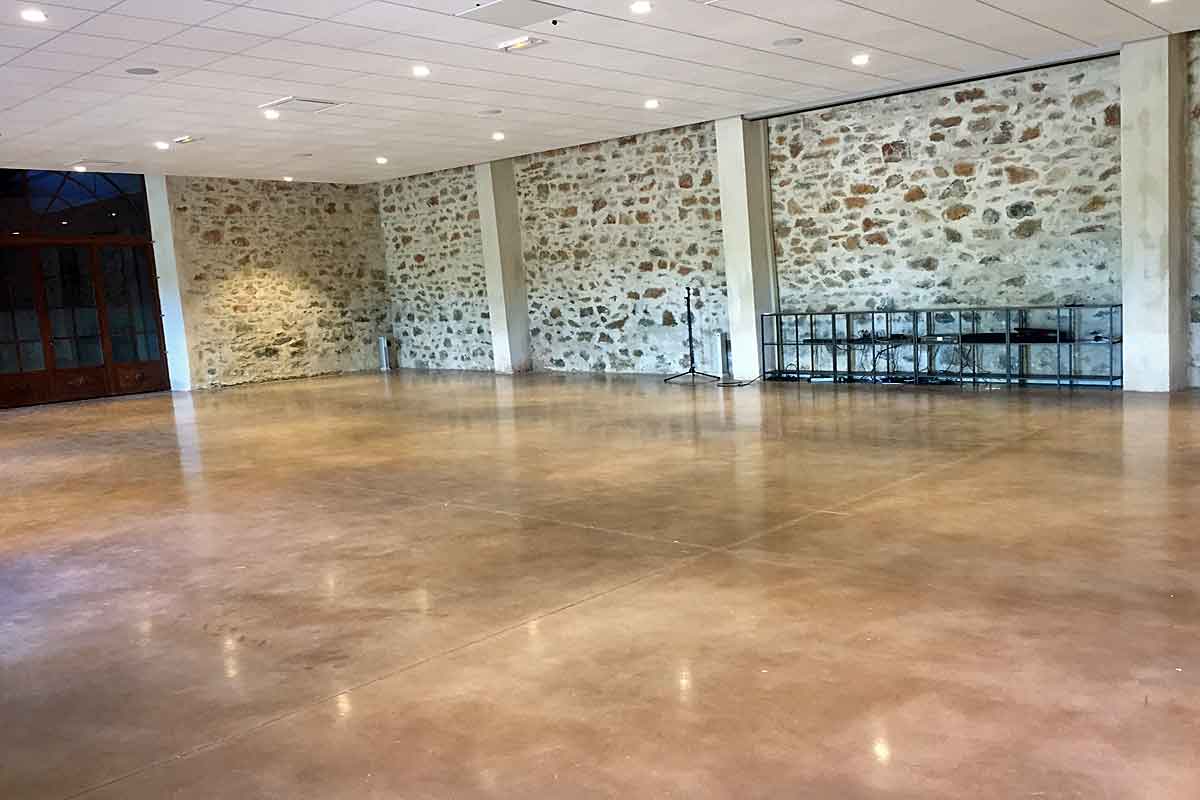 Indoor would be in the converted old Chai (wine making area) which is an air conditioned Reception room of 300m2, seating up to 300 people for a formal meal. The walls are attractive open stonework, the beautiful floor is "béton ciré" (waxed concrete) and there are doors out to an enormous terrace with amazing views. This room has teccy gizmos, such as video projector with big screen, lighting, CD, MP3, USB, Wi-Fi - all the Best Man needs to enhance his speech!