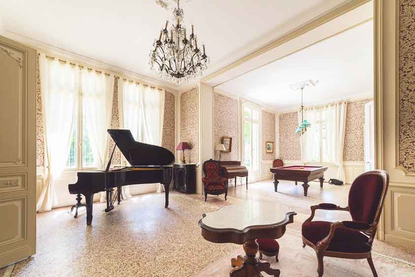 From the entrance a large hallway welcomes you into the Chateau. The beautifully appointed living space includes 3 Reception rooms - a large living room, a dining room and a huge room with grand piano and Billiard table. Many character features have been retained, there is original parquet flooring everywhere and as is traditional in Chateaux many rooms interconnect.