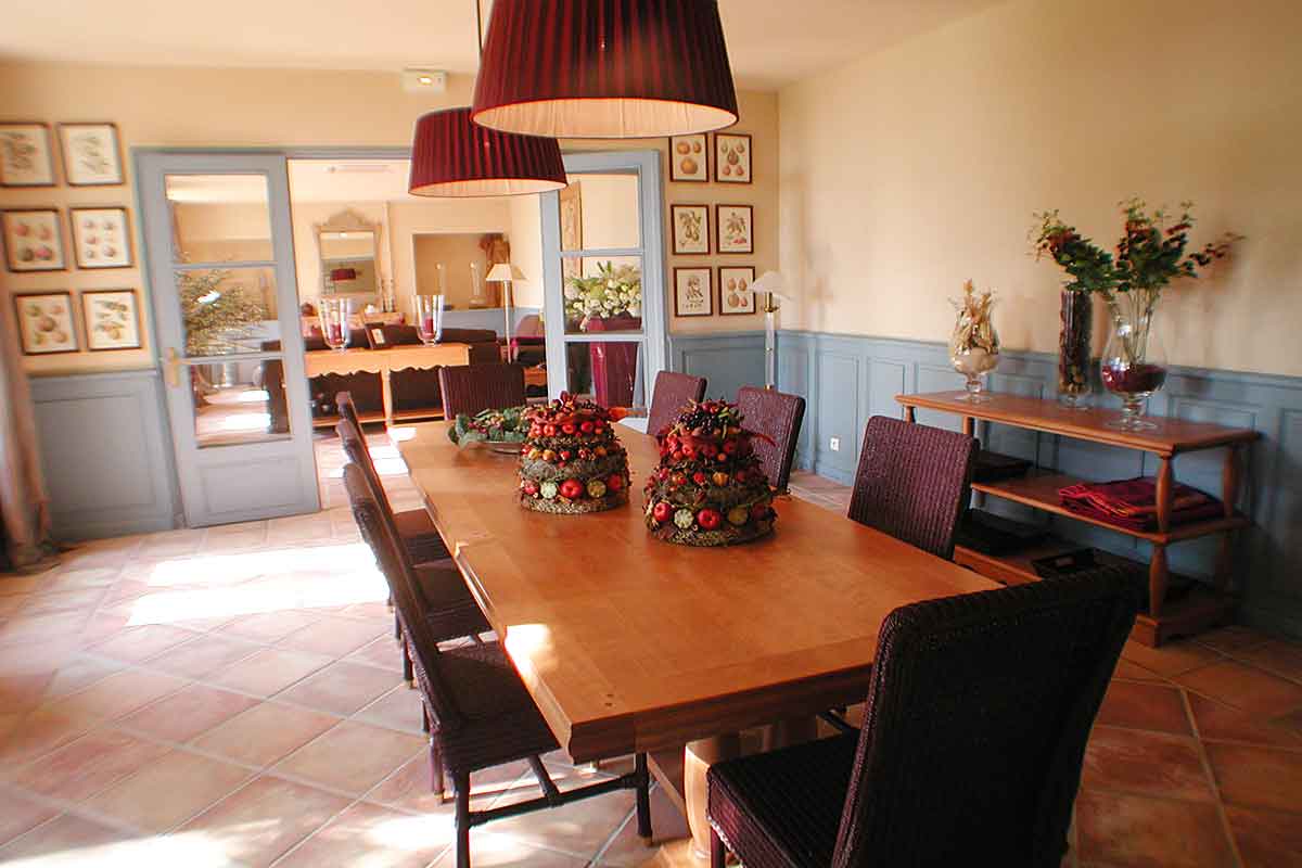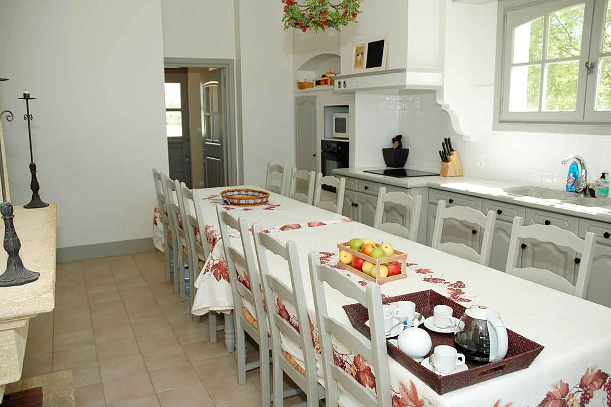 Large double doors lead through to the formal dining room, which also has French windows out to the terrace. Beyond is the large very well equipped modern kitchen (40m2), with dining table seating 14.