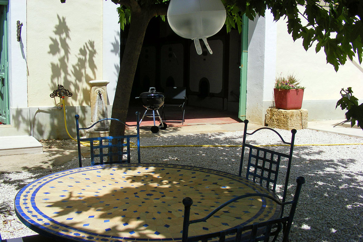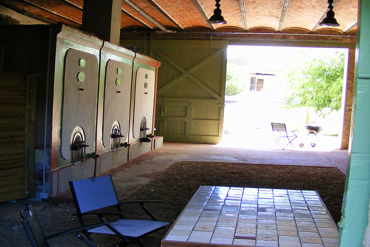 The ground floor is the "Cave/Garage". It houses the original wine cuves and has a Laundry area with a sink and washing machine. There is a table and chairs for dining in the shade during the hot summer days. This is also the garage with space for up to 2 cars.