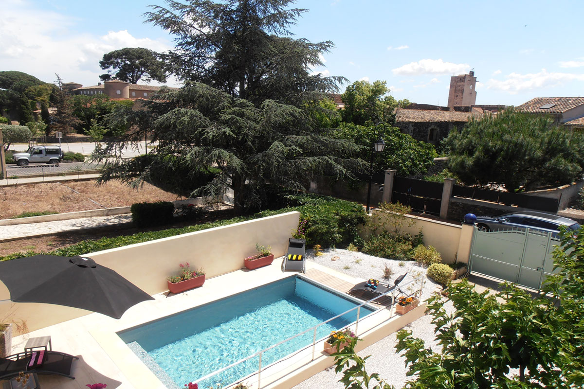 South of France holiday villa near Pezenas for holiday rentals. Sleeping 4 people in 2 bedrooms, a private heated pool, Wi-Fi, air-conditioning and within walking distance of the village. Great for couples. Sunday arrivals off season for Beziers flights.
