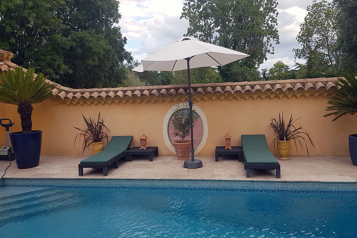 We have just returned from a fabulous week at Les 3 Pins - the second time we have stayed there. The property is a superb holiday base. The kitchen is very well equipped, if you want to self cater; if not, it is only a ten/fifteen minute walk into Pezenas to access the many good restaurants there. Pezenas is a lovely old town. There are four good bedrooms, with the upstairs master being particularly spacious and comfortable. There are several places to eat and to sit, both inside and out, so it's a very relaxing place to chill out, whatever the weather. We were lucky, so we spent a lot of time sunbathing around the pool and cooling down in it. The tennis court and table tennis table were also put to good use during the cooler parts of the day. The owners are very welcoming, relaxed and amiable hosts. They don't intrude, but are always available nearby if needed. We can't recommend this place highly enough and we will certainly book again in the not to distant future. Steve, South France Villa's client June 2019