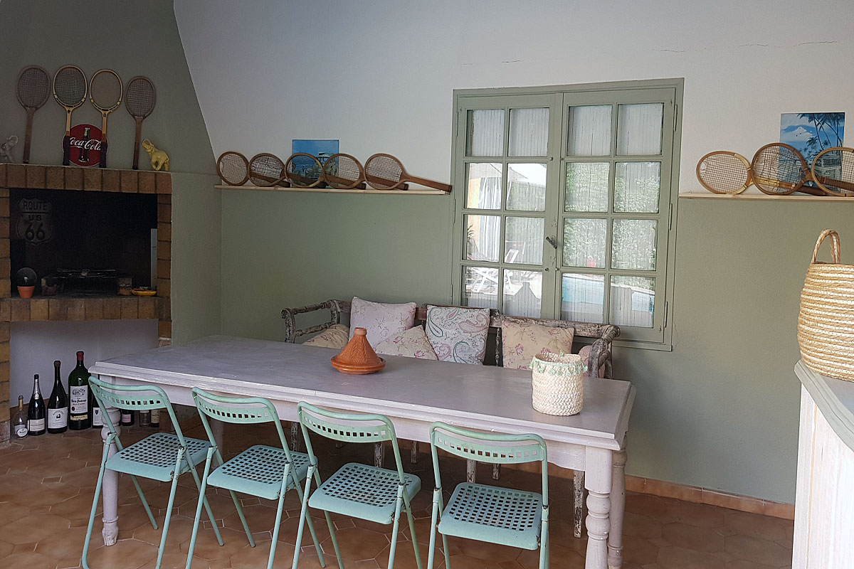 This Languedoc holiday house is spacious with a large living room, a summer kitchen, a fenced off private pool, a very large master bedroom upstairs and a private tennis court. The living areas have air-conditioning (not the bedrooms). Owners are great fans of 'vintage' decor and the house feels homely and well lived-in with a touch of bohemian panache.