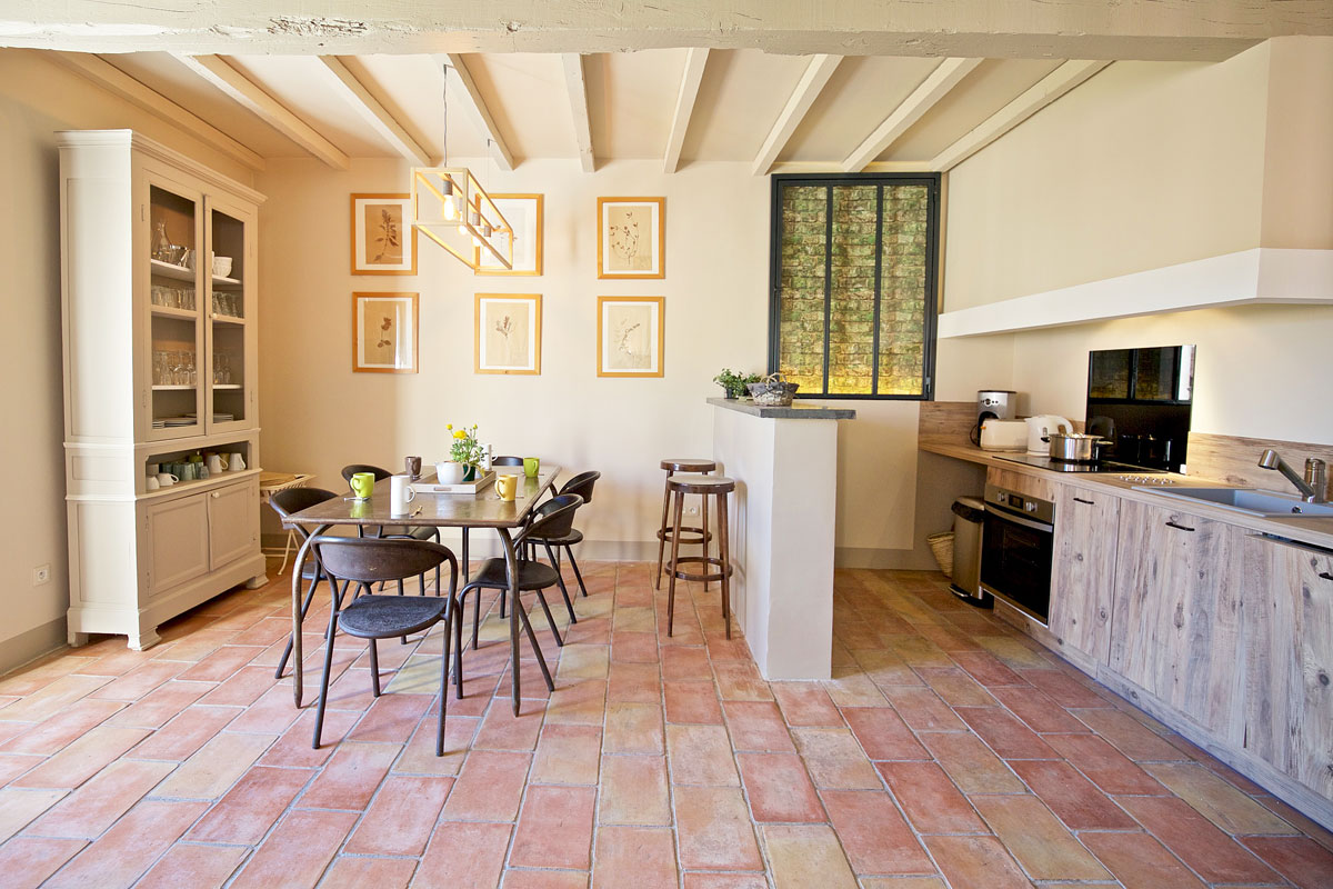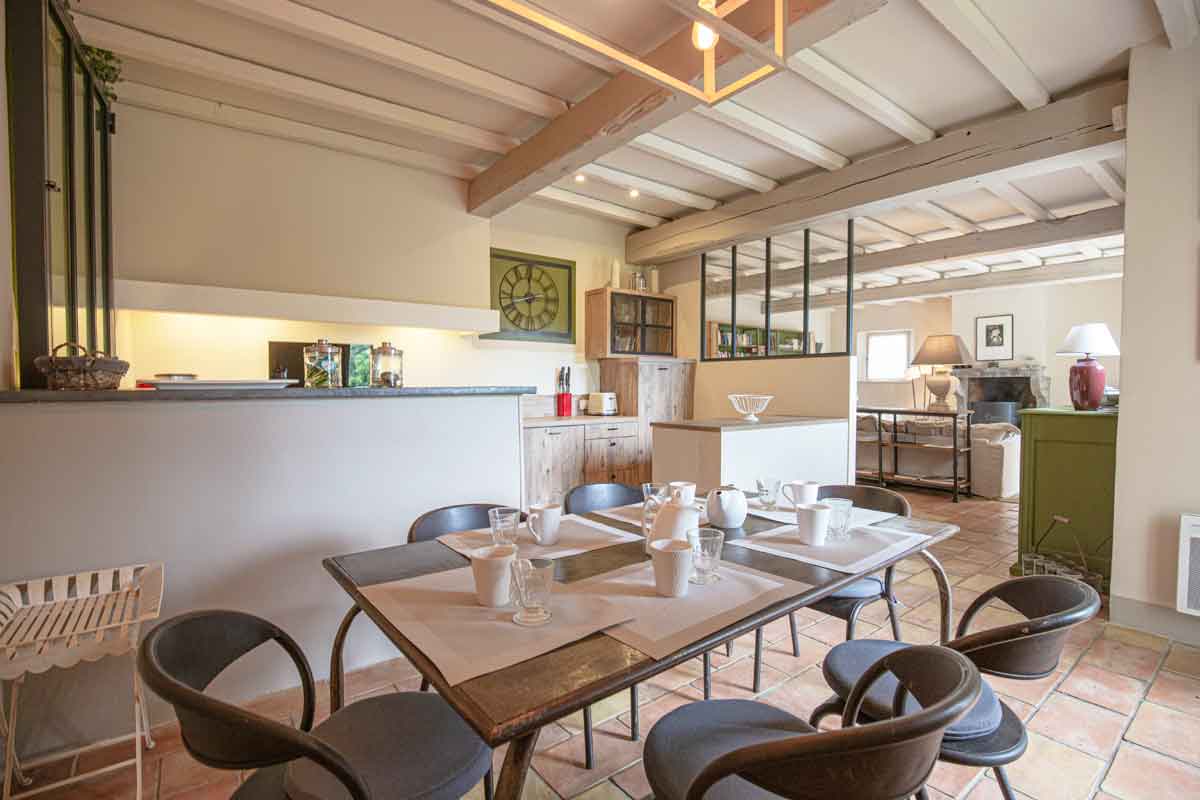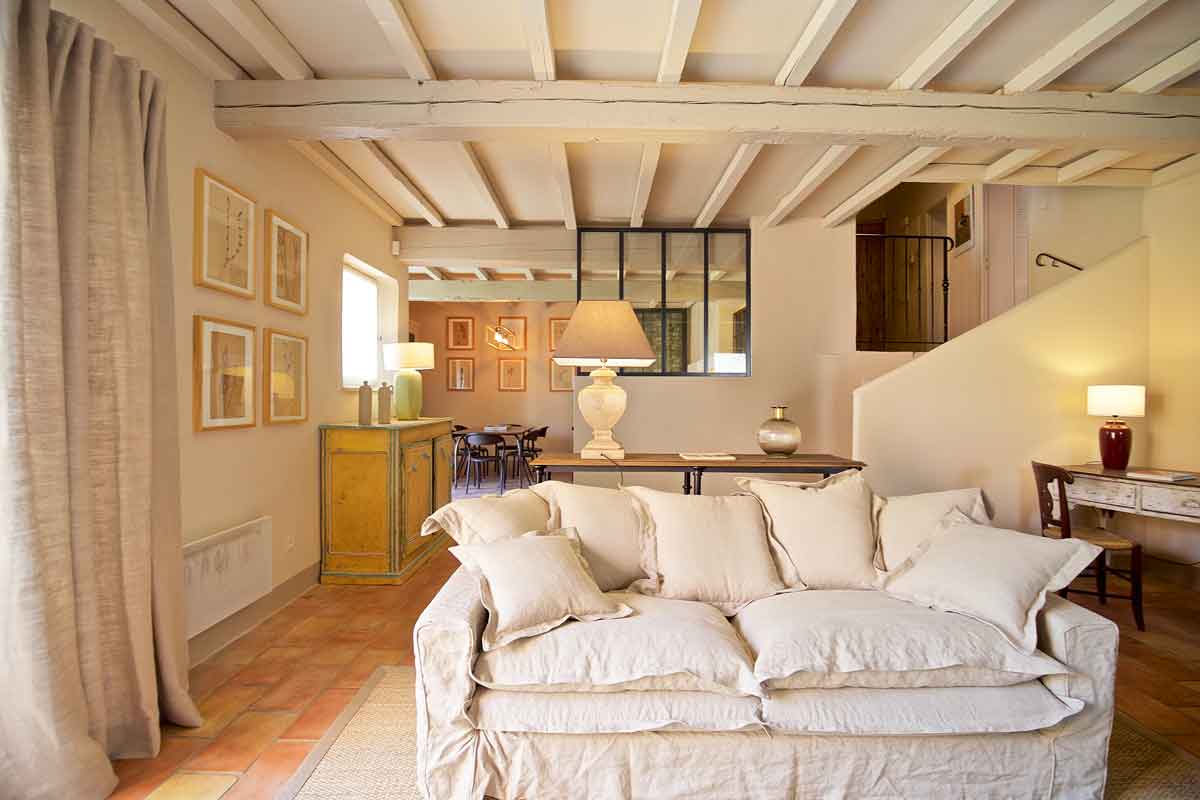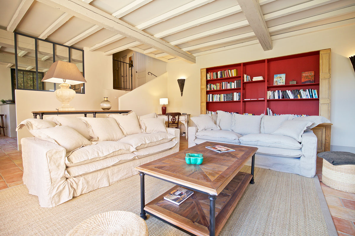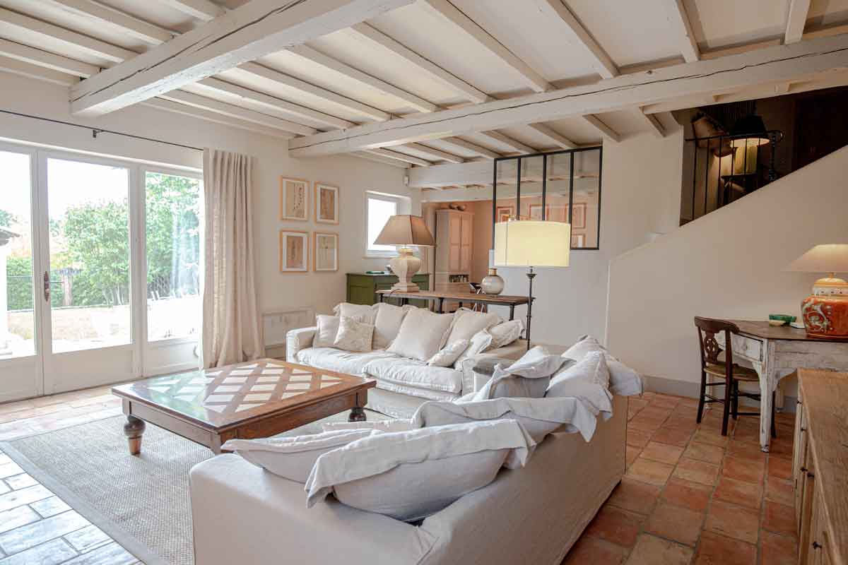With old terracotta tile flooring throughout, the downstairs includes a kitchen with zinc bar and a dining table for 8, as well as a living area with a beautiful fireplace and Provence style wooden ceiling beams, all lead on to the private garden and heated swimming pool (supplementary cost).