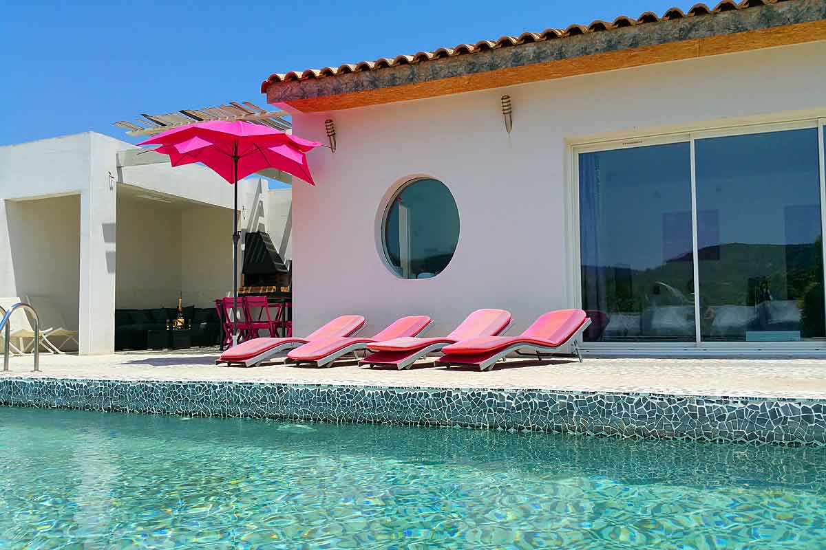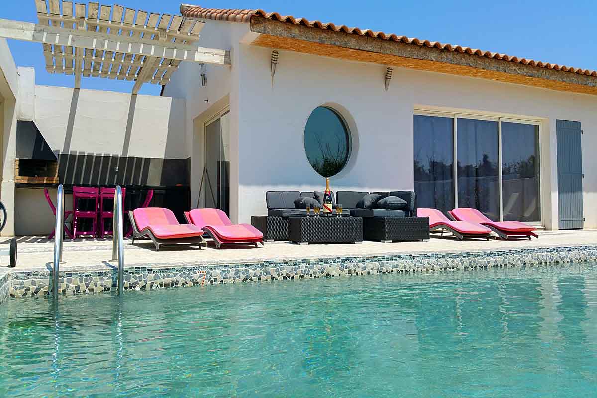 South of France modern, contemporary and striking holiday villa to rent with private pool on the edge of a typical Mediterranean village in the Corbieres region of the Languedoc en route to the Cathar castle land. Suitable for certain wheelchair users. Sunday arrival/departure day in July/August.