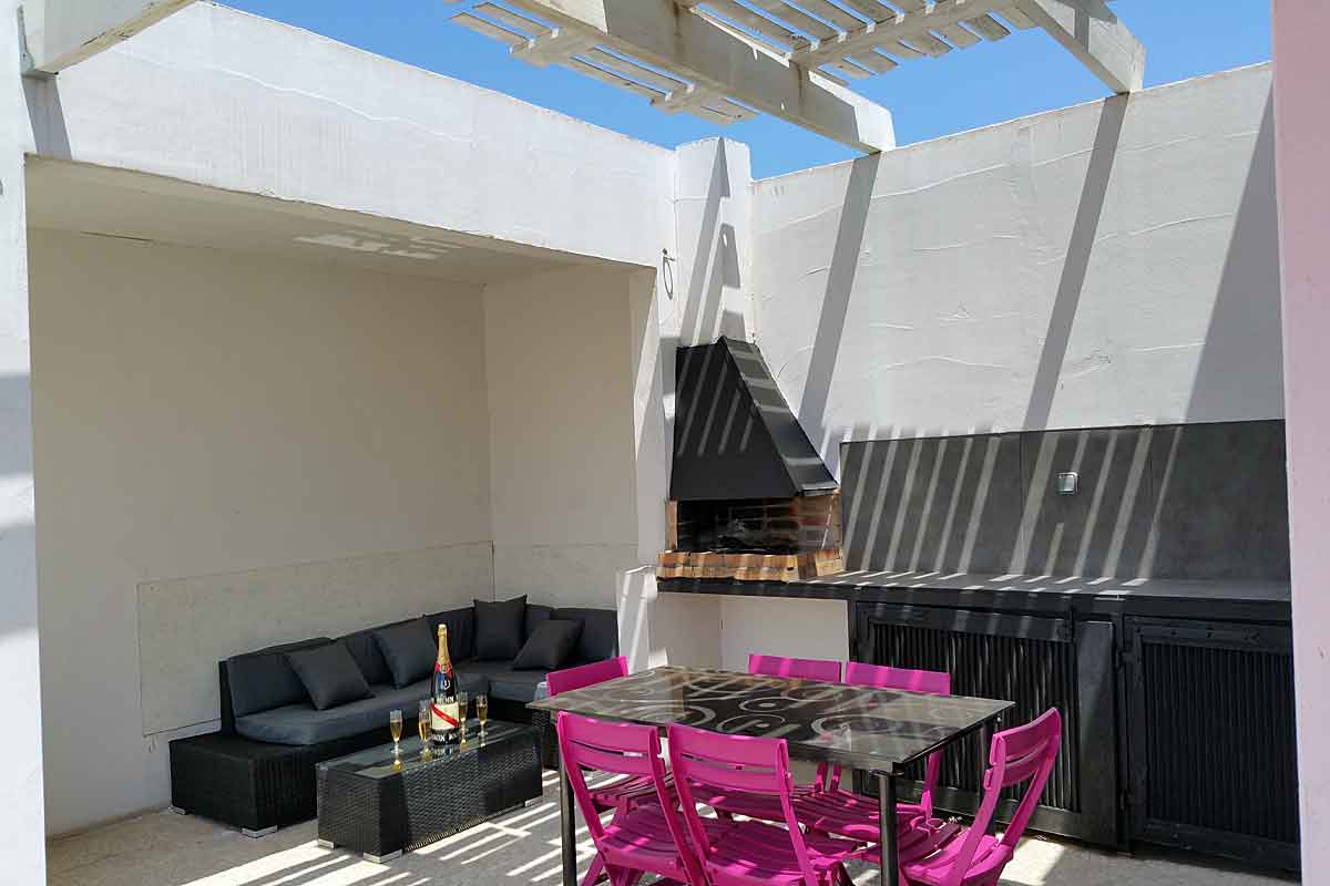 The villa has a garden area of 800m2 and a private pool with a terrace area and BBQ area. The large living-dining rooms have direct access on to the covered terrace, which provides shade during those hot afternoons by the pool.
