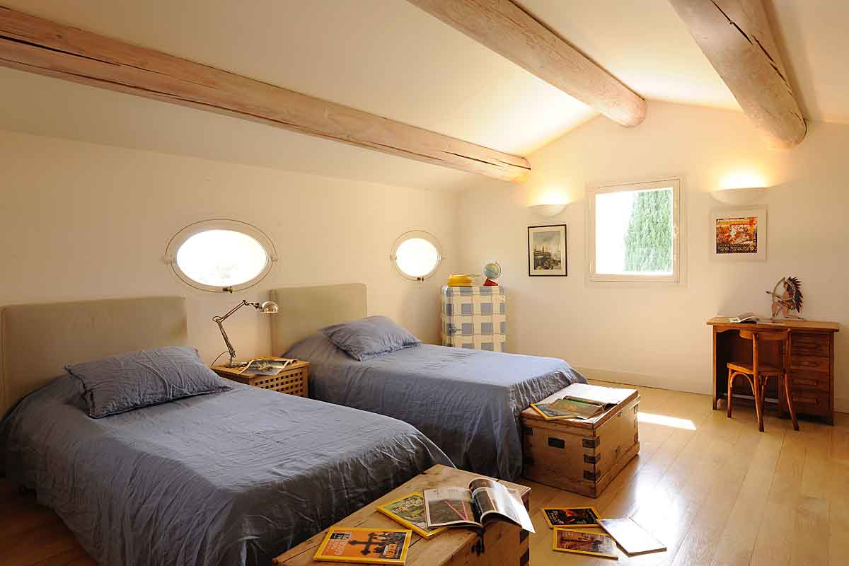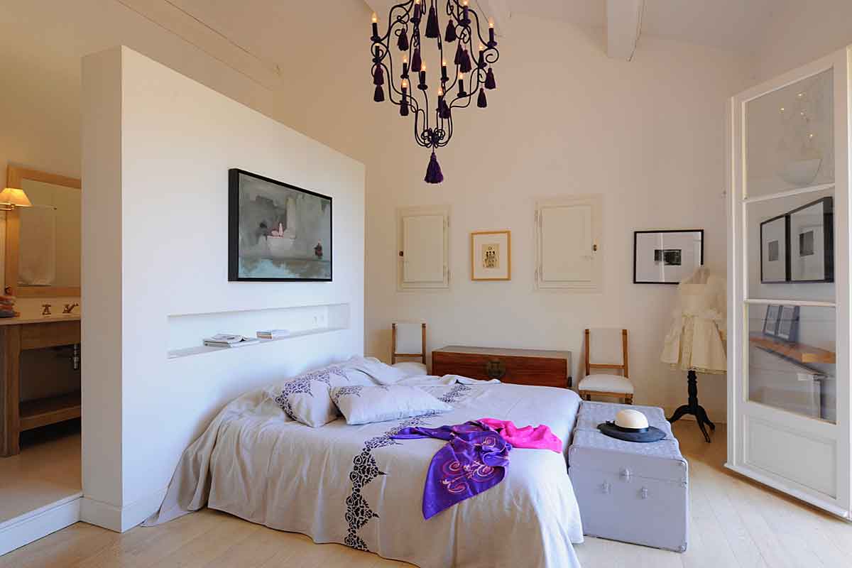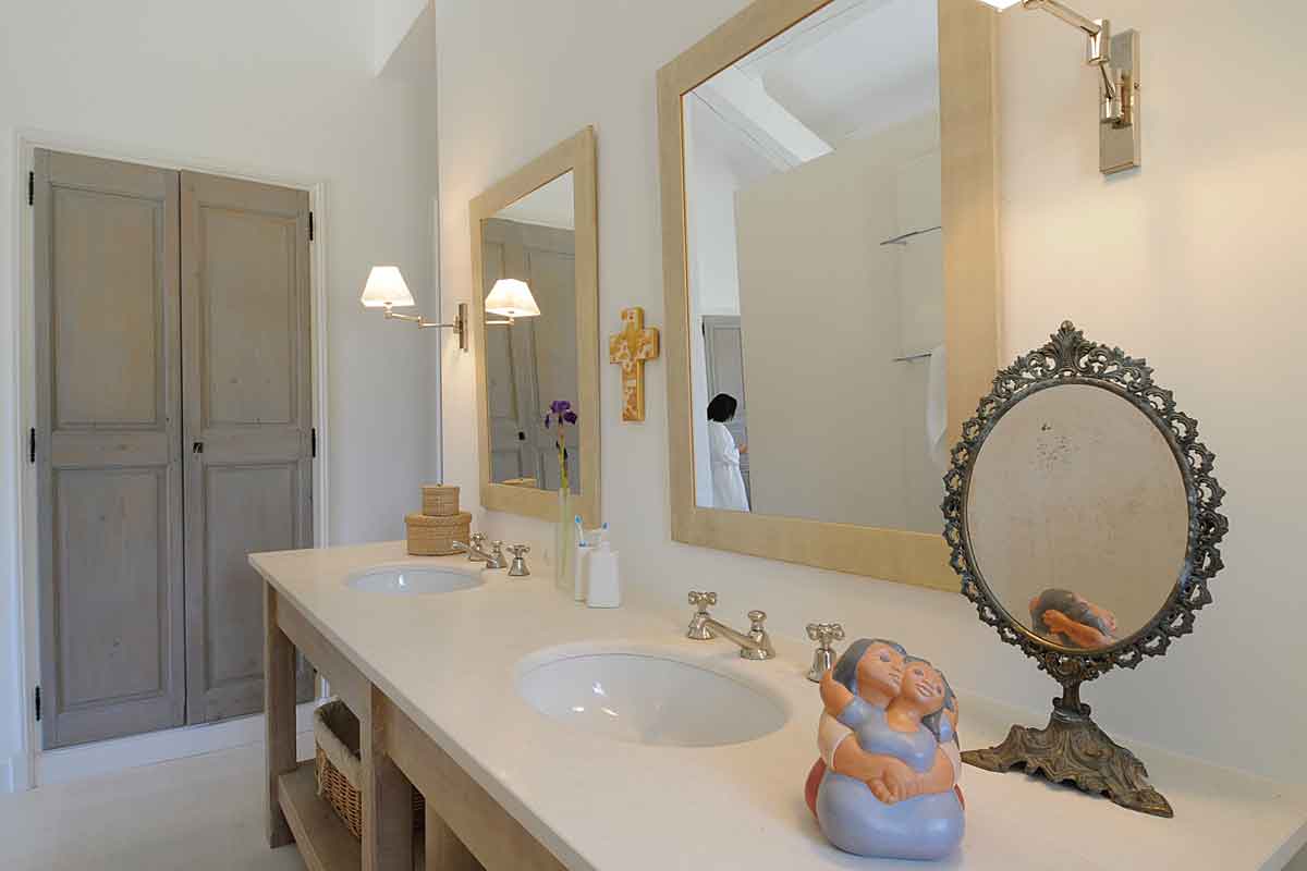 Bedroom 1 (Master) - on first floor - king size (180cm), en suite shower room with double wash hand basins, Italian rain shower, separate wc. Access to a private terrace with views to Mont Ventoux
