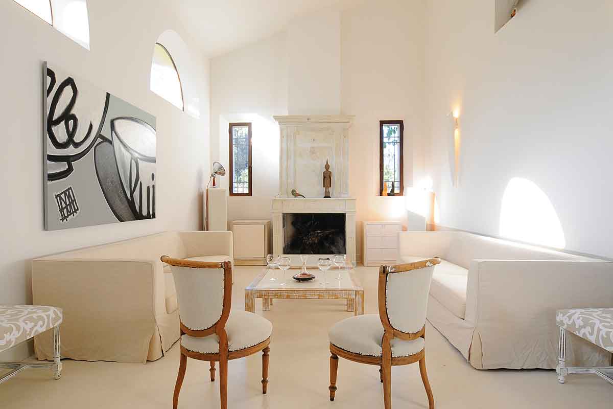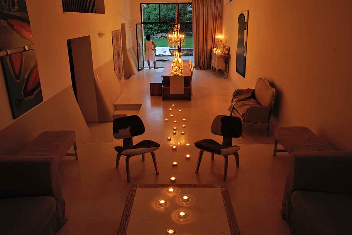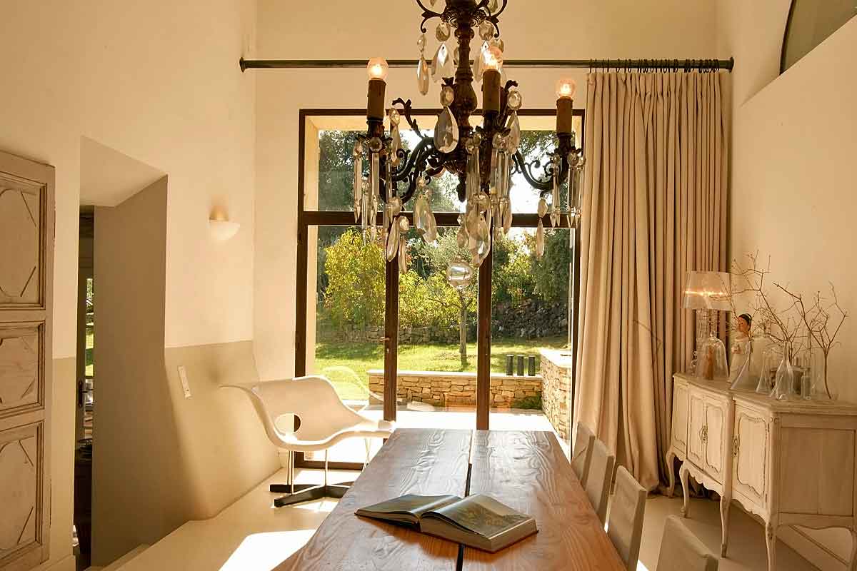A triple height, triple length room, that once housed the tractors and wine vats, is now the living-dining space with lots of seating areas and a bespoke dining table for 10 made of Douglas Fir from the Owners workshop in Chile.