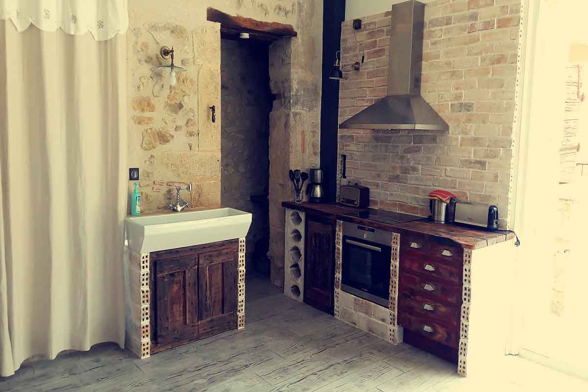 This large 115m2 Holiday Gite is more like a ground floor loft! The whole living area is open plan and air-conditioned.