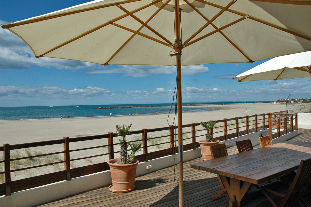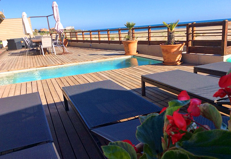 Superb South of France Chalet to rent directly on the Mediterranean beach at Rochelongue, near Agde in Languedoc with heated plunge pool! Stunning sea views. Price is for 6 people.