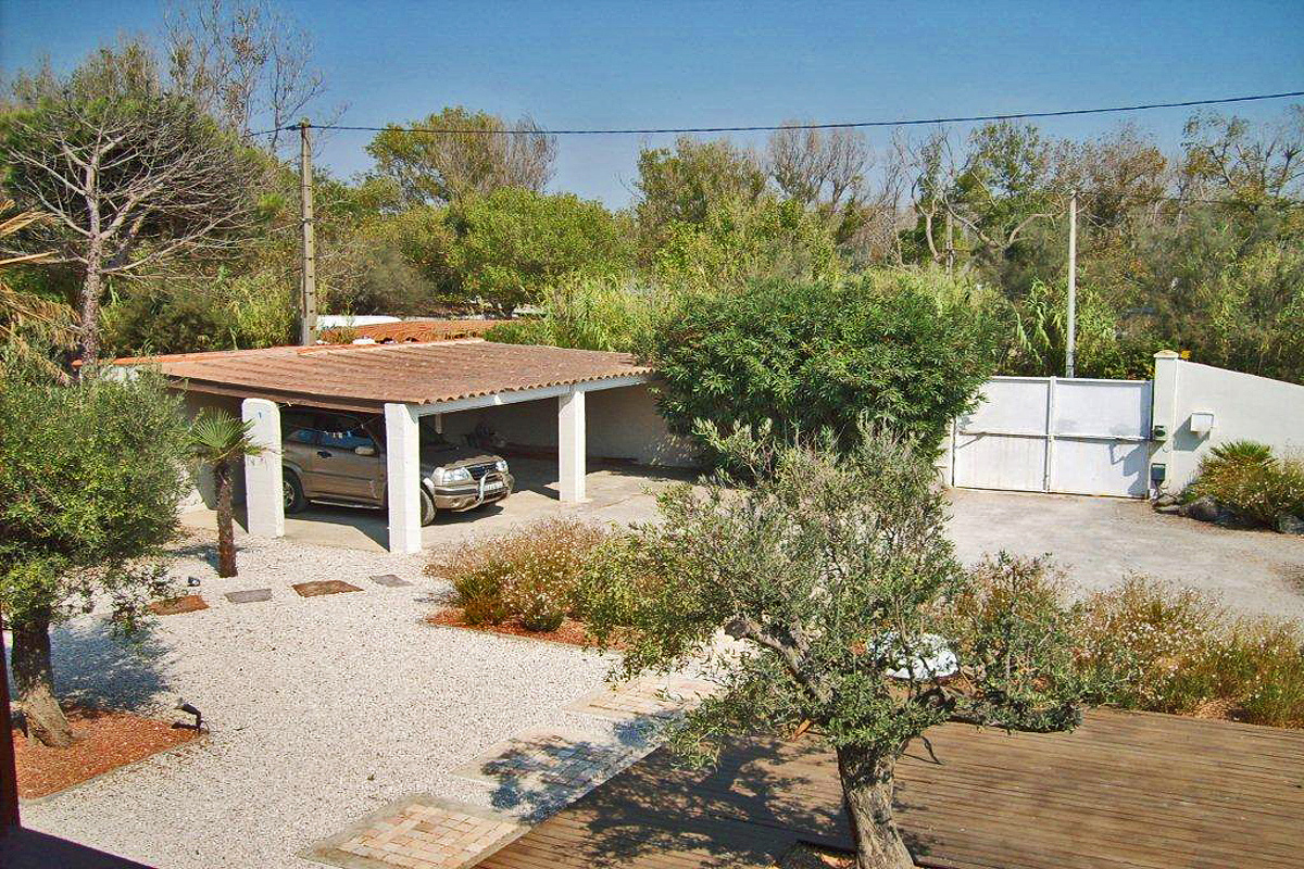 Shaded car parking in the 600m2 walled and gated garden. (The 'garden' is more sand than grass).