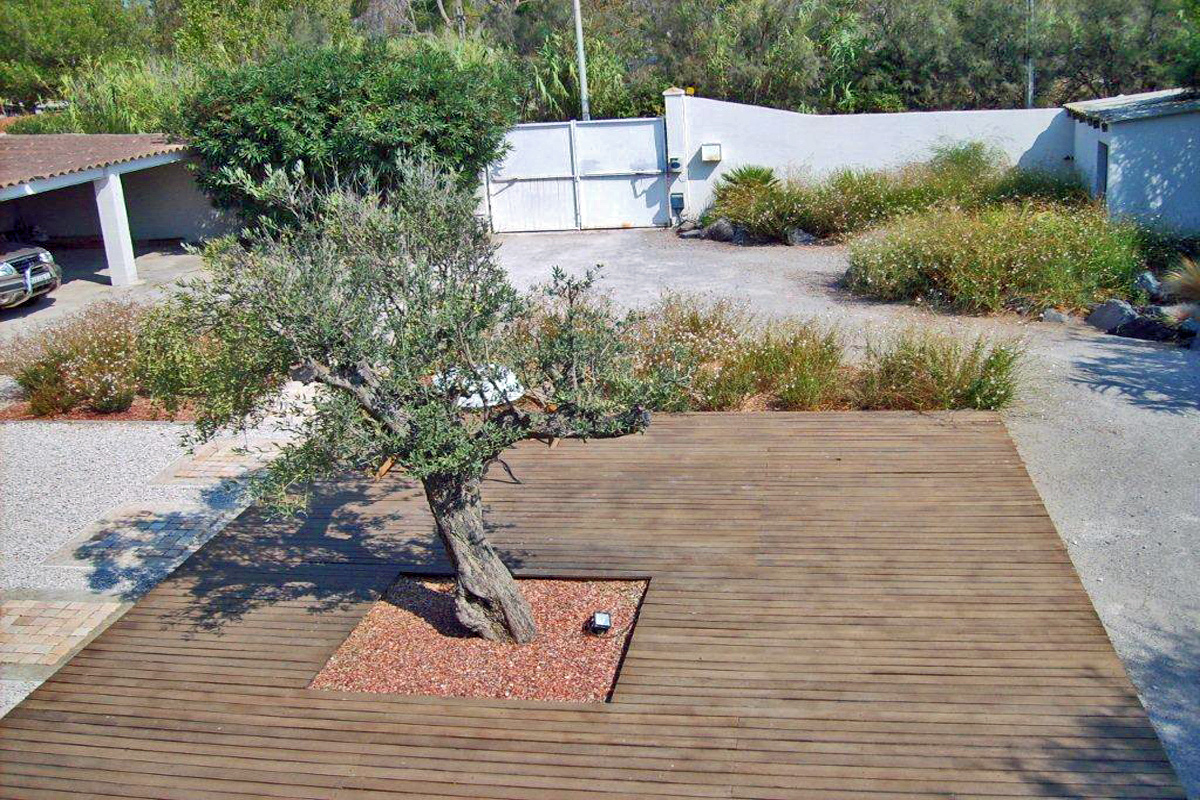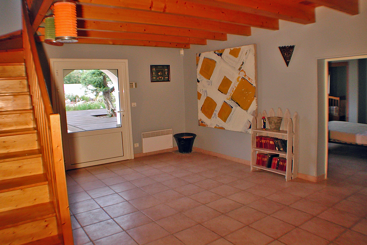 Two large glass doors lead out onto the 110m2 wooden decked terrace, with dining table seating 10+ and chairs, sun-loungers/deck chairs and two large parasols. Perfect for the South of France way of life, evening aperos, BBQ....