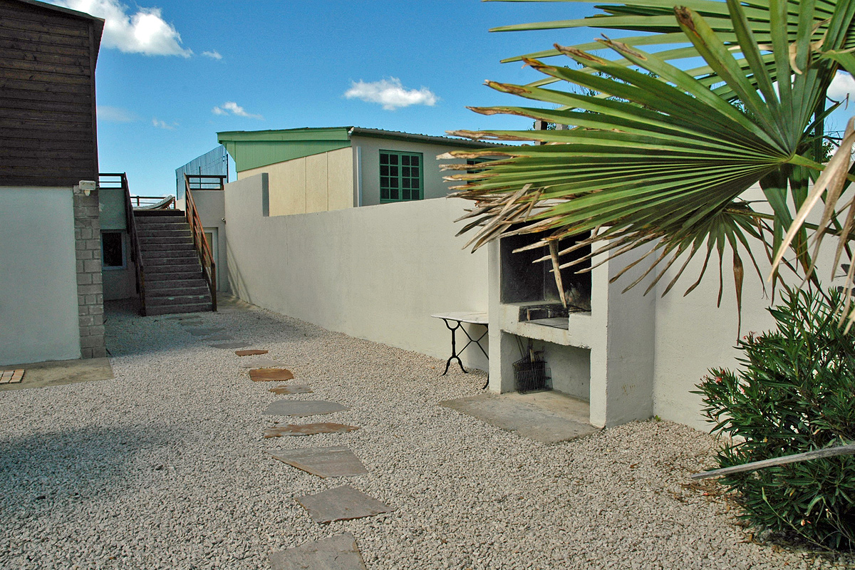 A dozen steps lead down from the terrace to a gate that opens directly onto the French sandy beach. There is an outdoor shower (cold water only) just outside the gate to wash off all the sand before you come back up to the terrace. More steps then lead down from the terrace to the BBQ area.