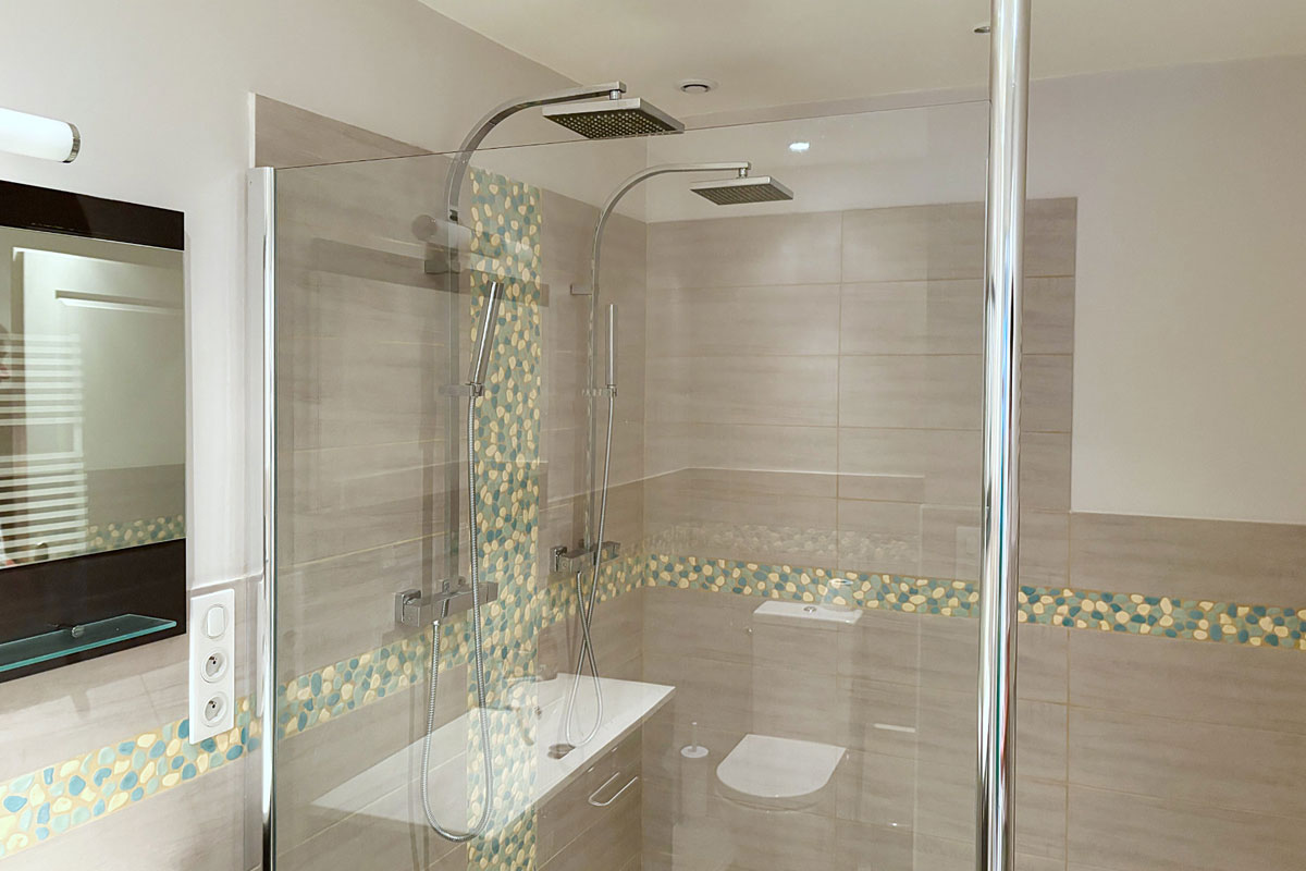 These 2 bedrooms share the Italian shower room (twin showers!) there is also an independent wc.