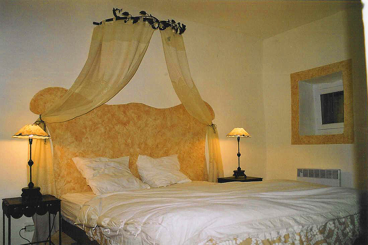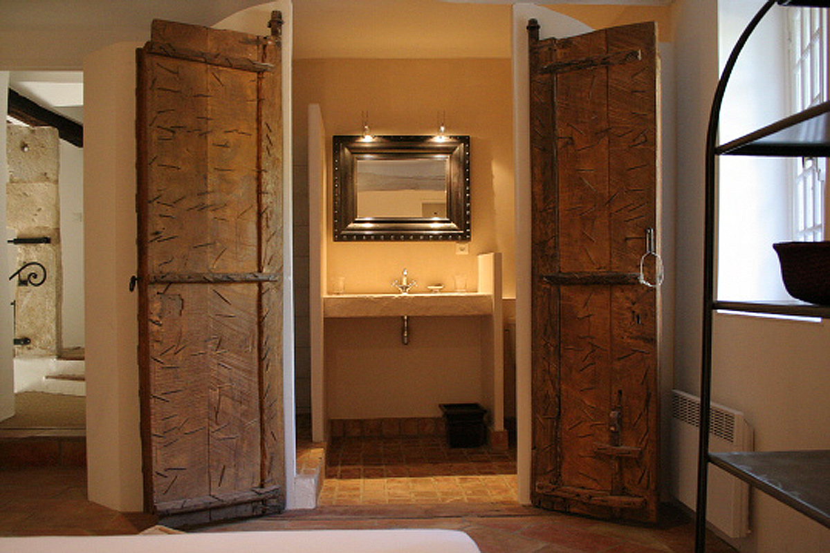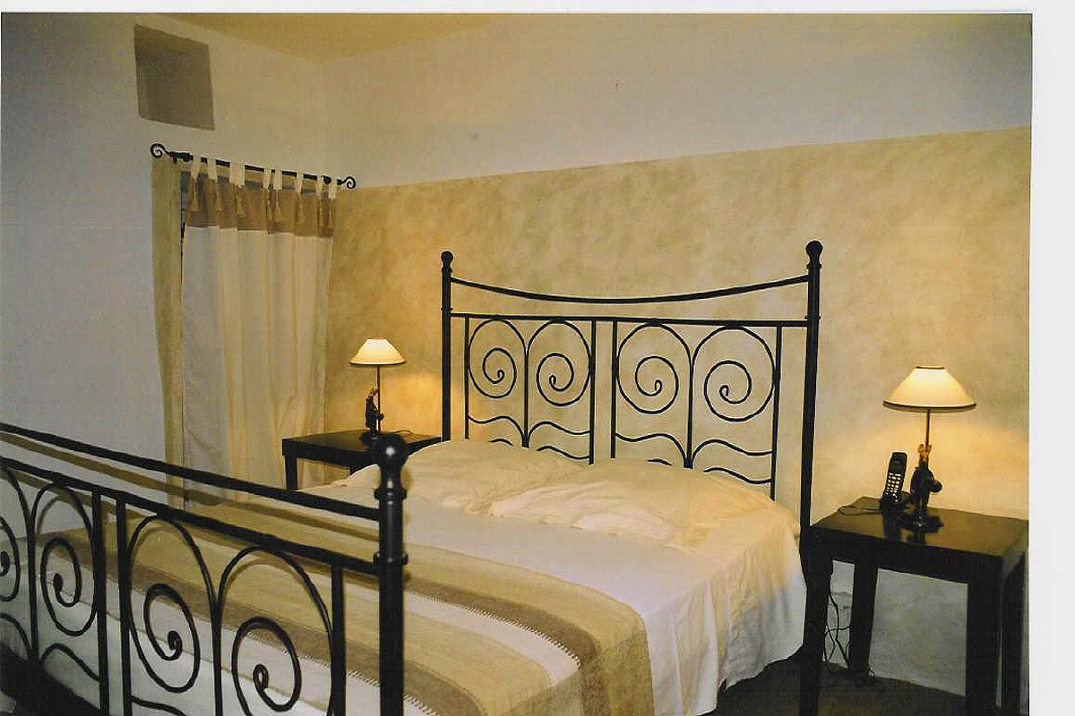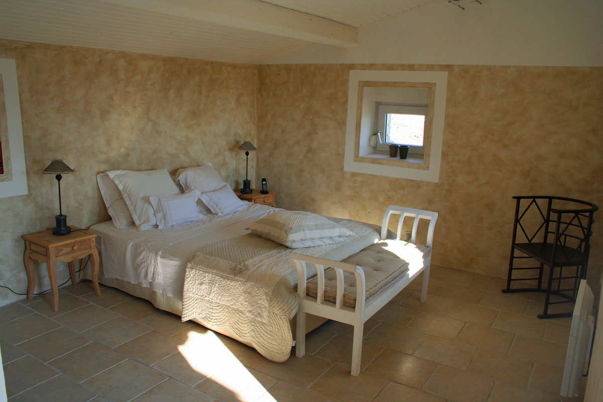 Large master bedroom with a double bed and ensuite shower room, with wash hand basin and wc, plus a terrace with a panoramic view of the Luberon hills and the 'Les Alpilles' mountains.