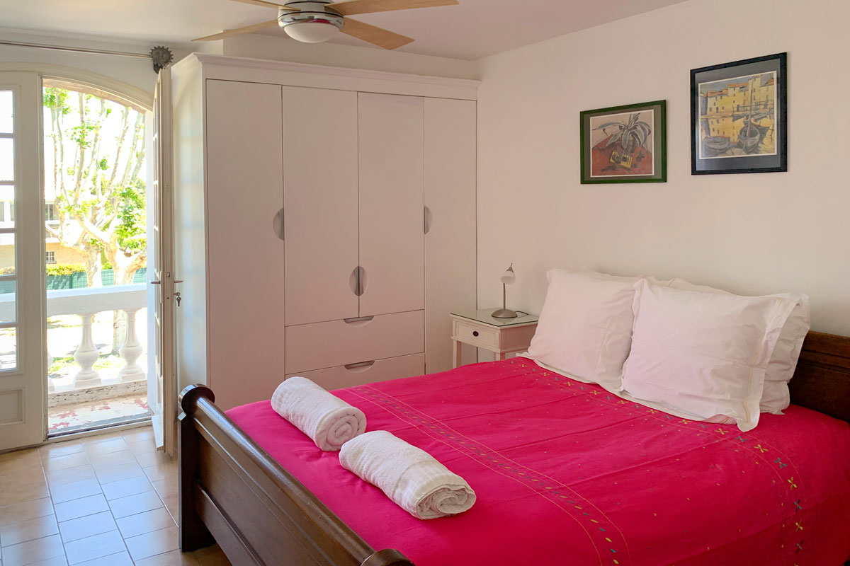 Air-conditioned twin bedroom, with doors opening out to the terrace.