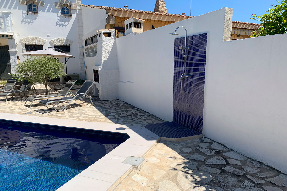Aan outdoor shower is next to the pool along with the essential BBQ!