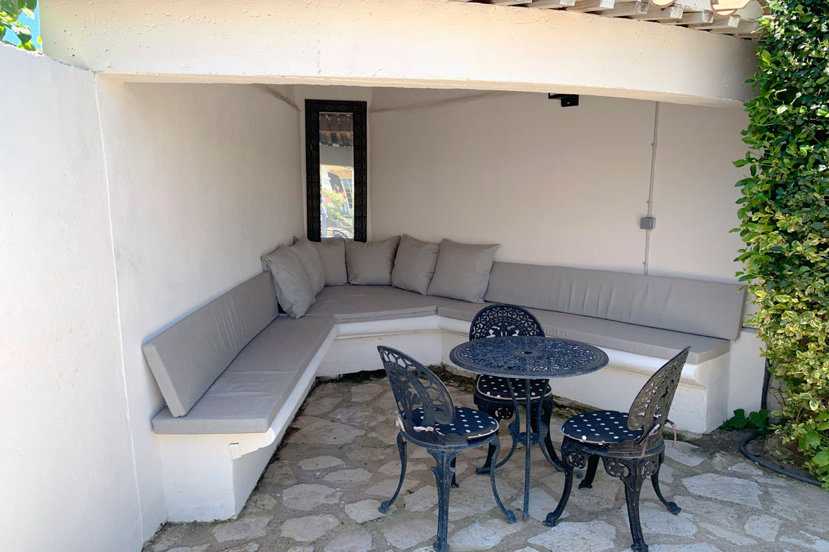 A cosy comfortable shaded area has been built in the corner, a great place for a quiet read.