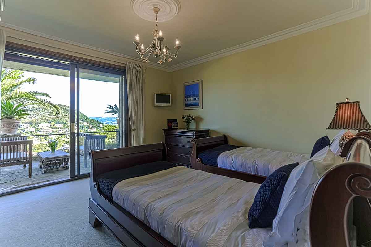 Five large bedrooms (2 of which are twin), all with their own ensuite bath/shower rooms and SKY TV. Four of the bedrooms open onto terraces with stunning views to the bay of Cannes and further across the South of France.