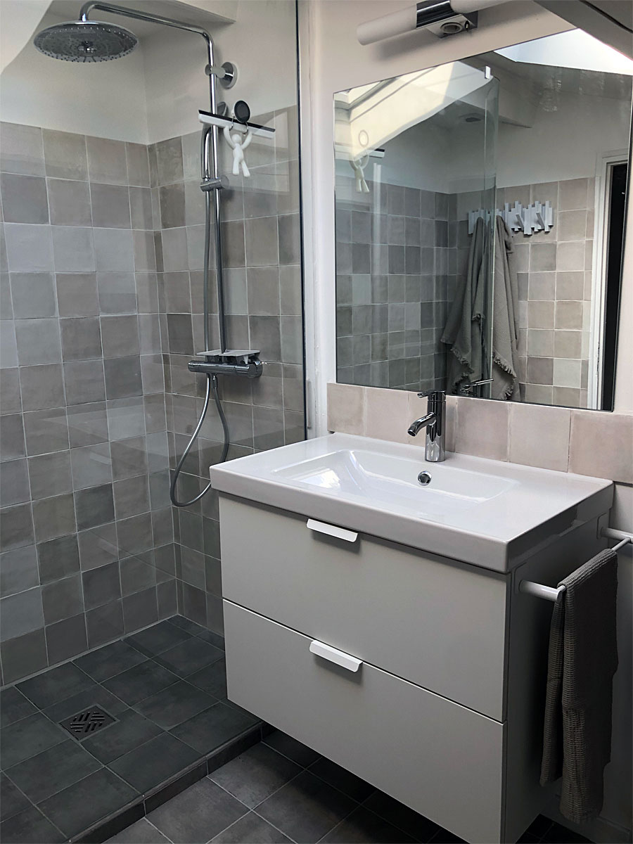 Ground floor bedroom, with double bed (180cm), en suite shower room and wc.