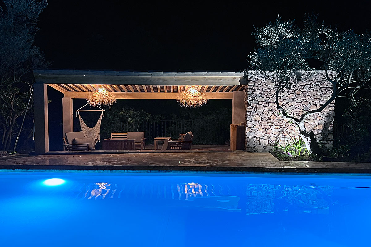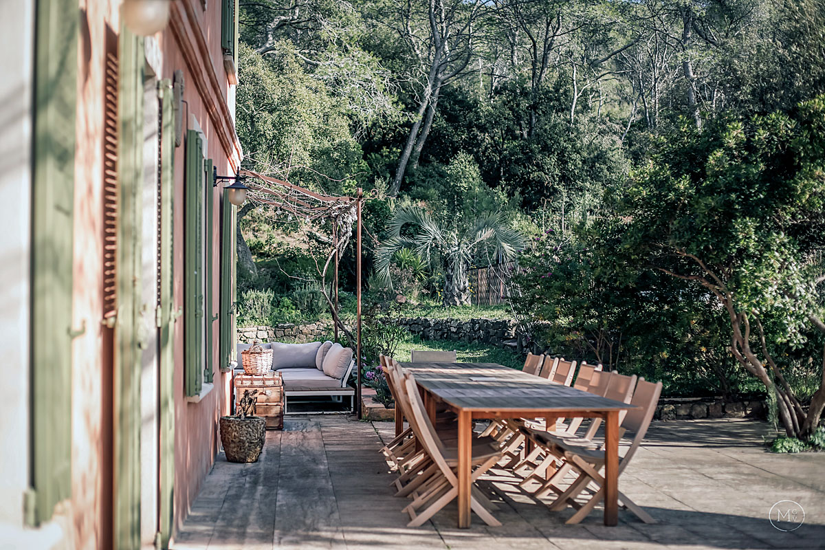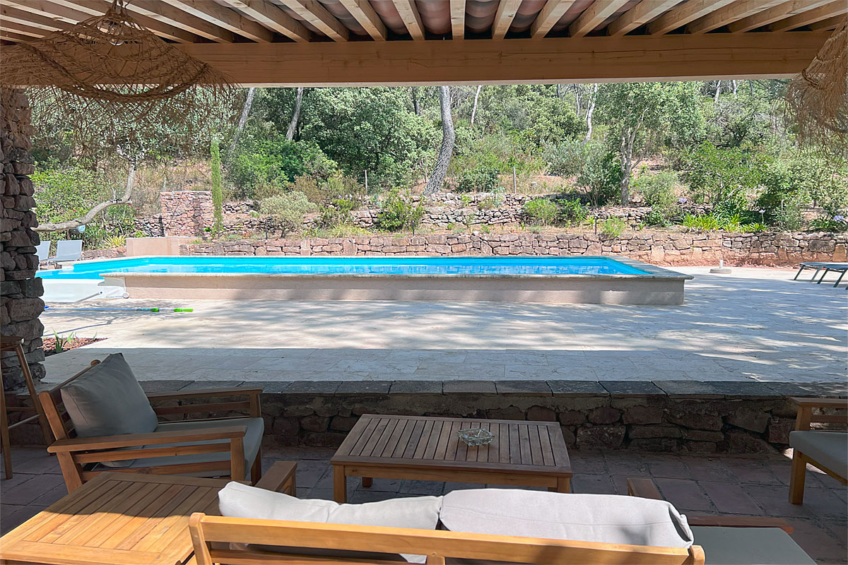 A large terrace for outdoor dining, plenty of sun loungers and relaxation areas in the South of France sunshine, or in the shade listening to the cigales singing.