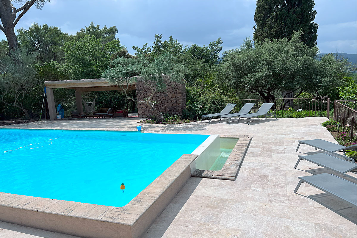 Modern Provencale holiday villa with 5 bedrooms, all with air-conditioning, 3 bathrooms, large open plan living area, set in over a hectare of mature garden and has a wonderful 10 metre gated swimming pool.