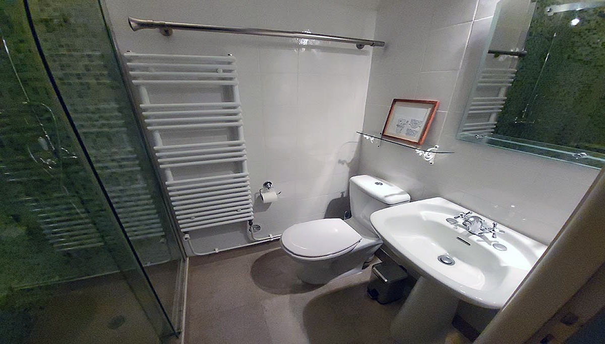 Bedroom 3 - off this living area, is a large bedroom with a superking bed (200cm). There is an en suite bathroom with bath with overhead shower, washbasin and wc.