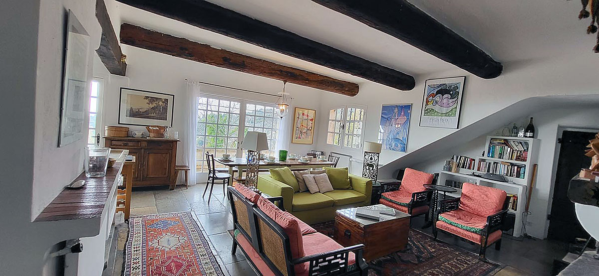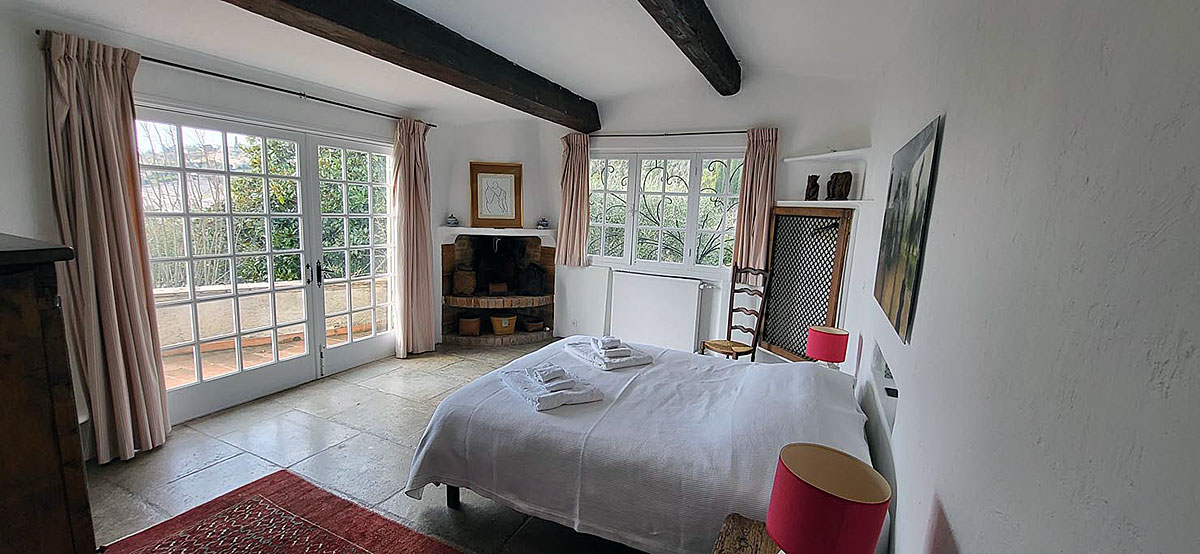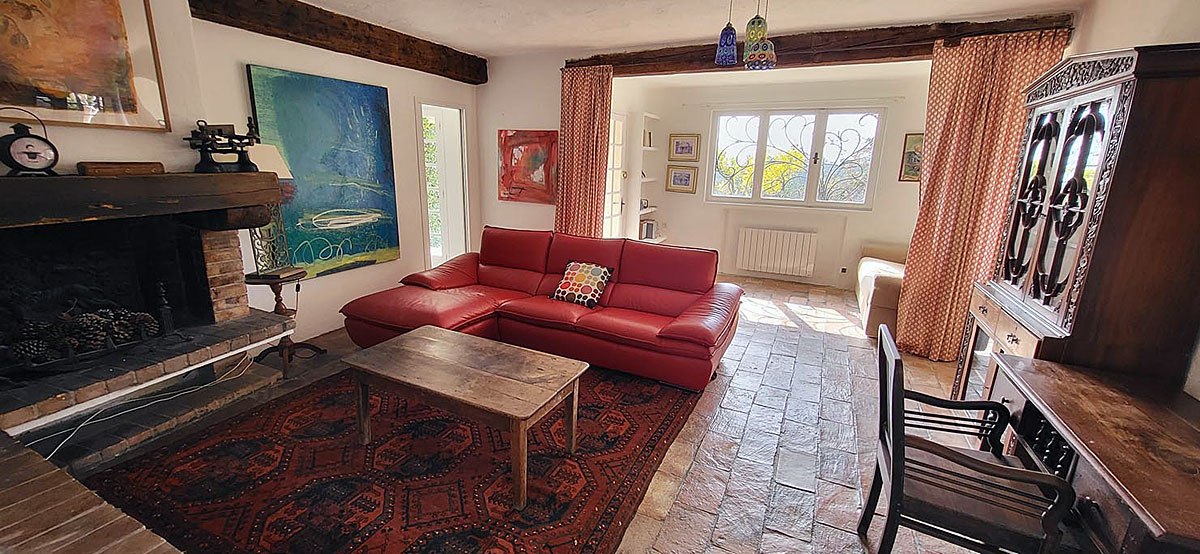 The lovely private rather rustic Southern France villa with fantastic panoramic views to the hills and to the sea is laid out over two floors and can be used by two families because it almost comprises two separate apartments, with two comfortable living rooms.