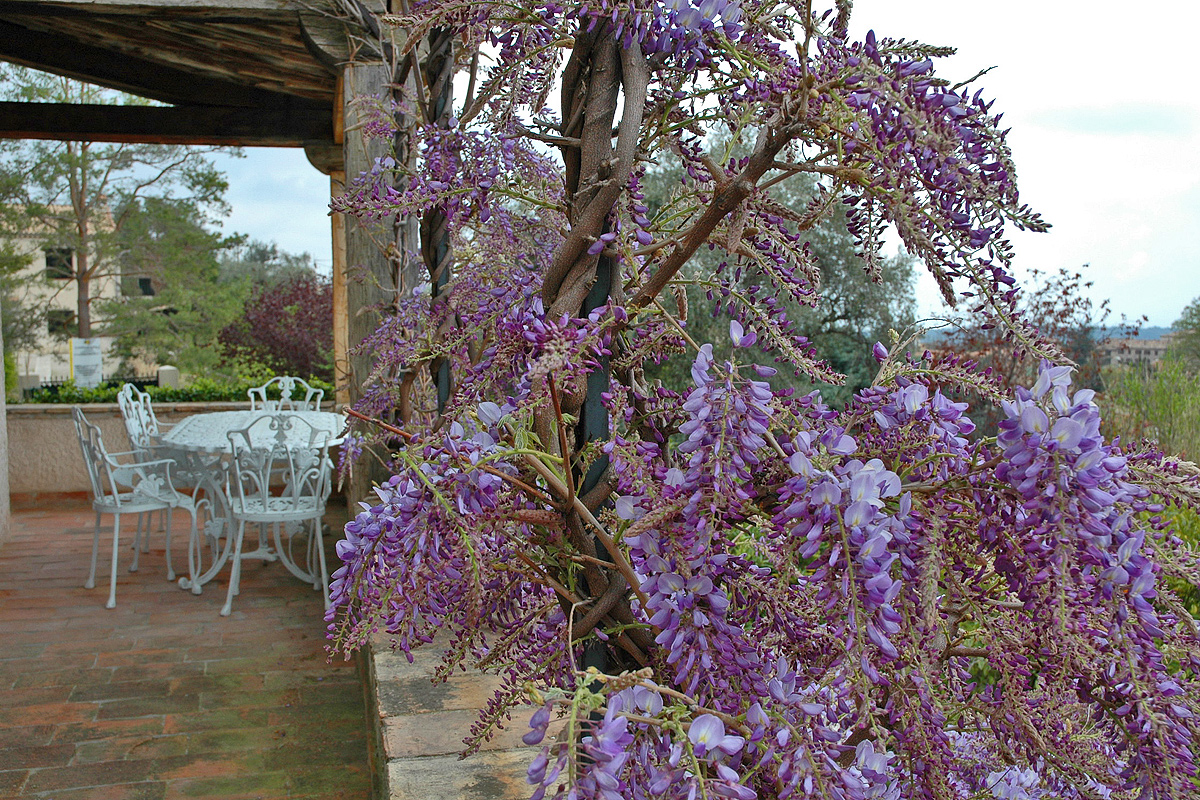 The grounds are enclosed and the garden is mature with palms, oleander, magnolia, fir trees and olive trees.