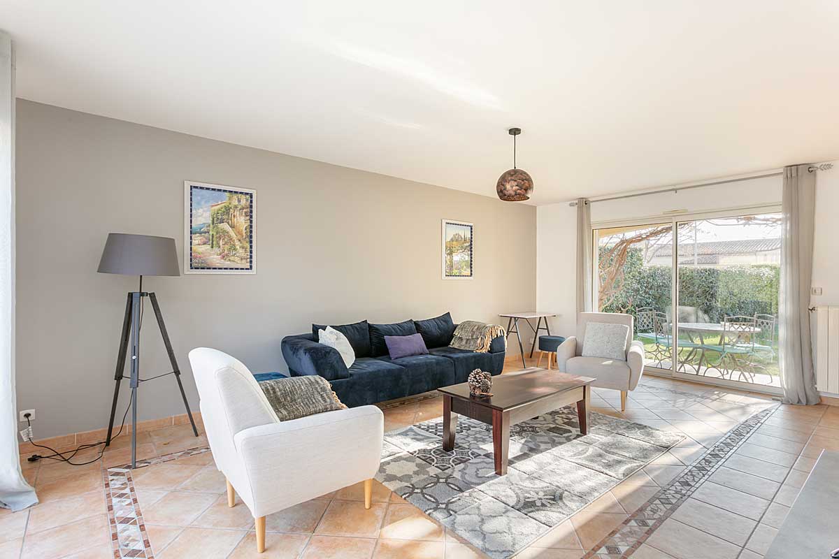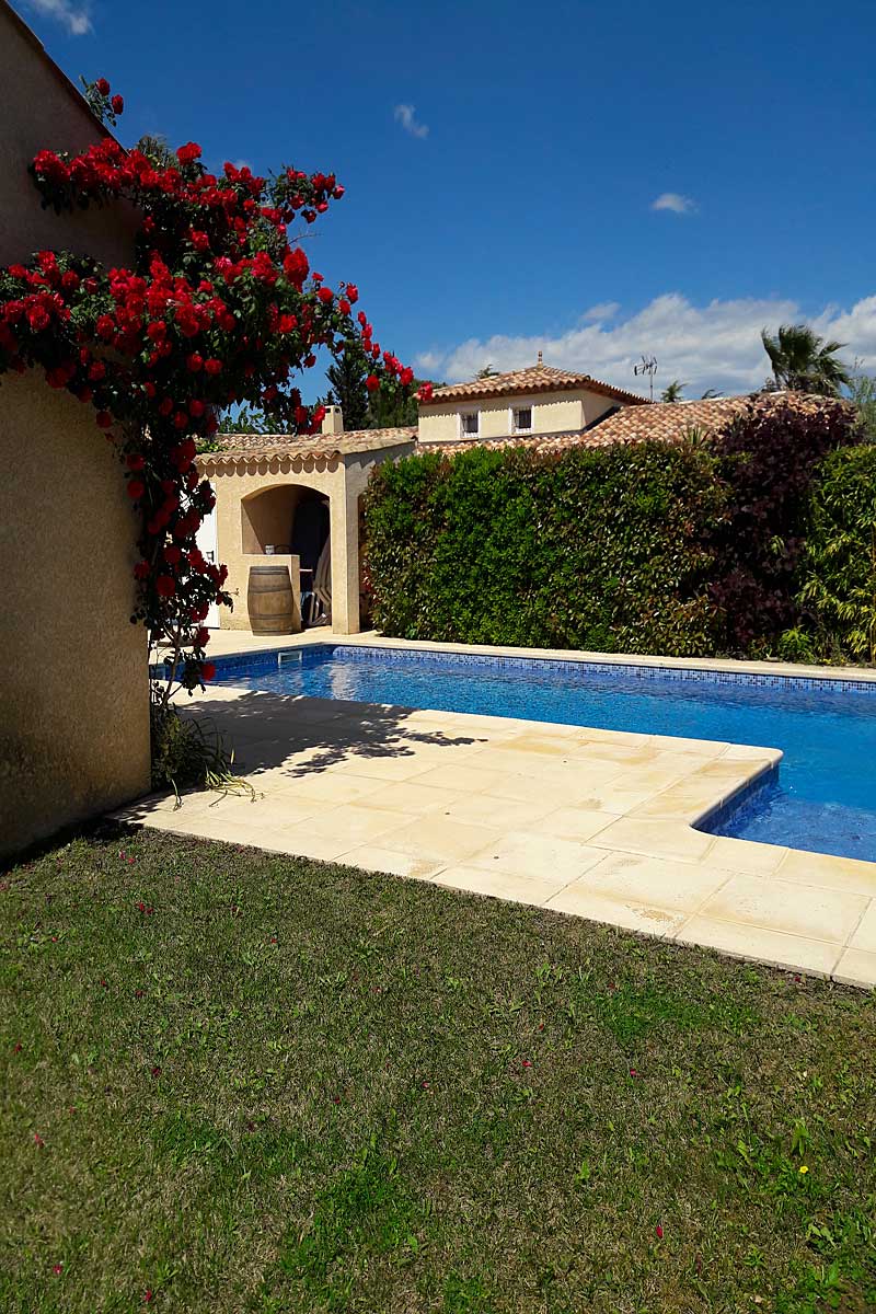 There is plenty of space to enjoy the South of France outdoor life, a front garden with grass, mature trees and Mediterranean plants.
