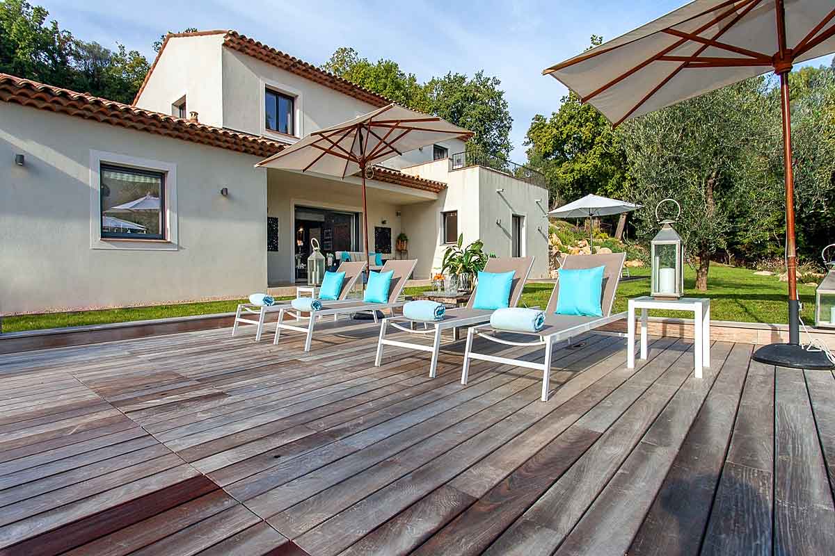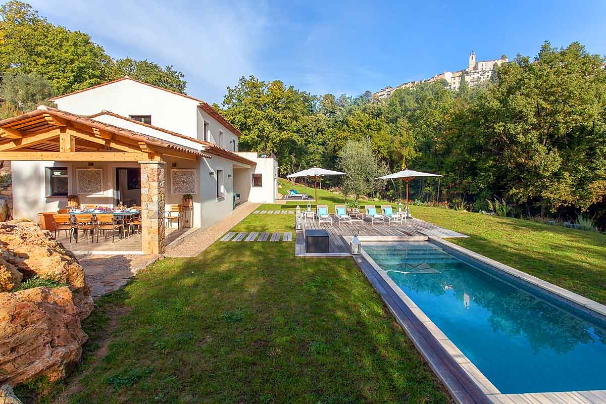 Villa Jasmin is a spacious modern holiday villa situated in an elevated position with commanding views over the valley and set below the ancient village of Chateauneuf de Grasse.