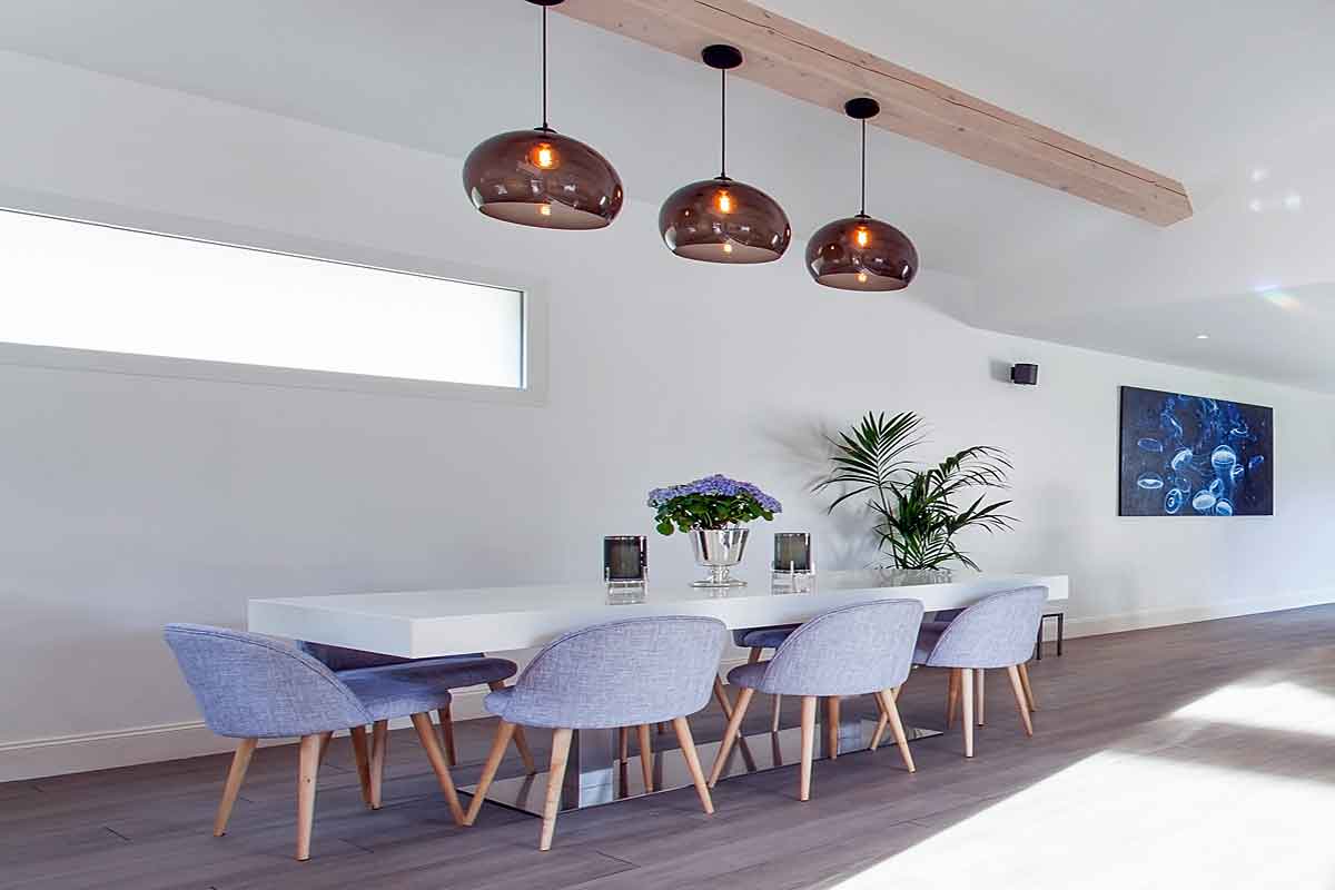 The aspect of the villa towards AM048A Villa Violette has been designed so that the rooms can't be overlooked. The windows on that side are smaller i.e. if you look at the dining area you will see the high level window letting light in but maintaining privacy.