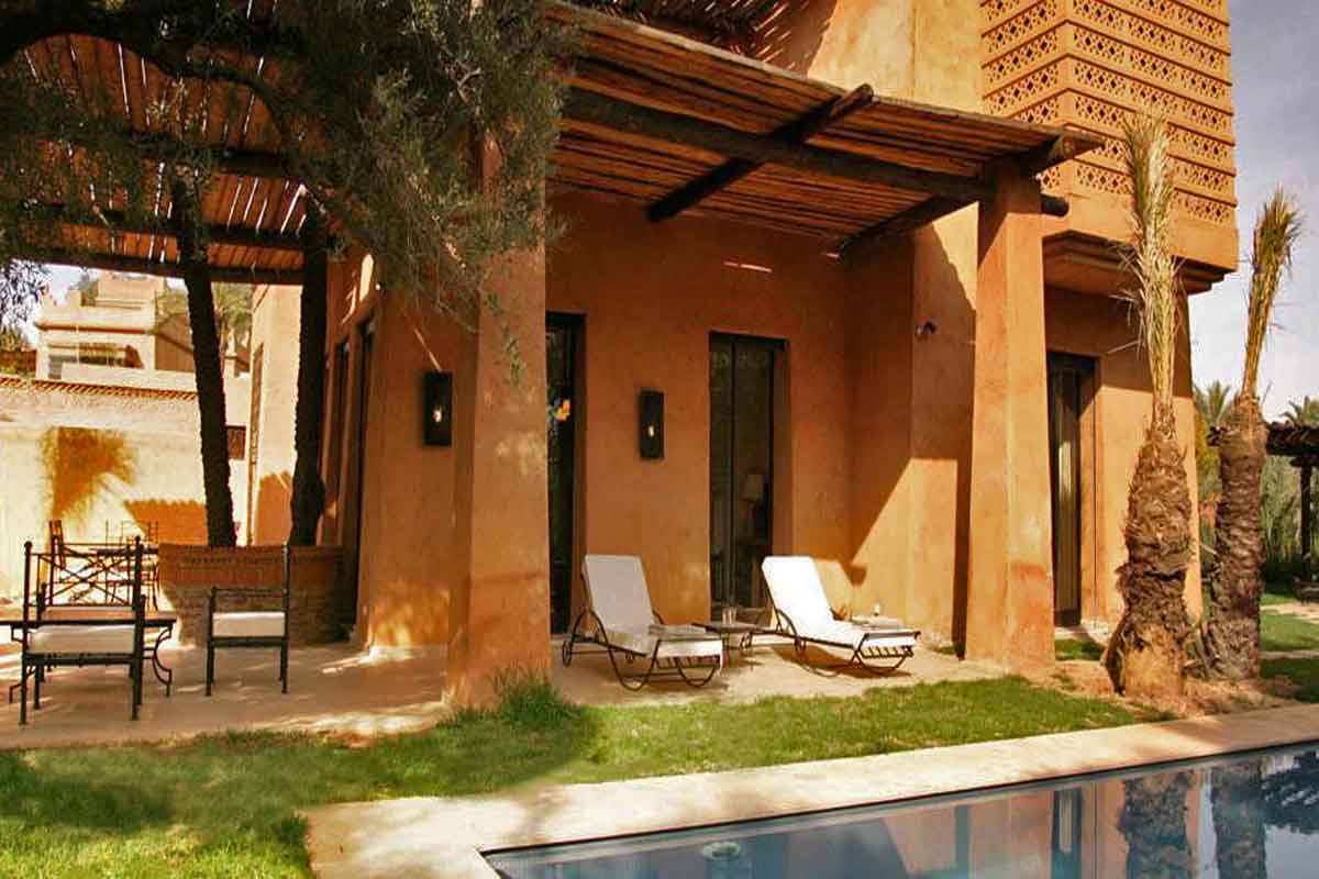 Domaine de Kasbah is in a quiet and secure location on the edge of the Palmeraie district just outside central Marrakech.