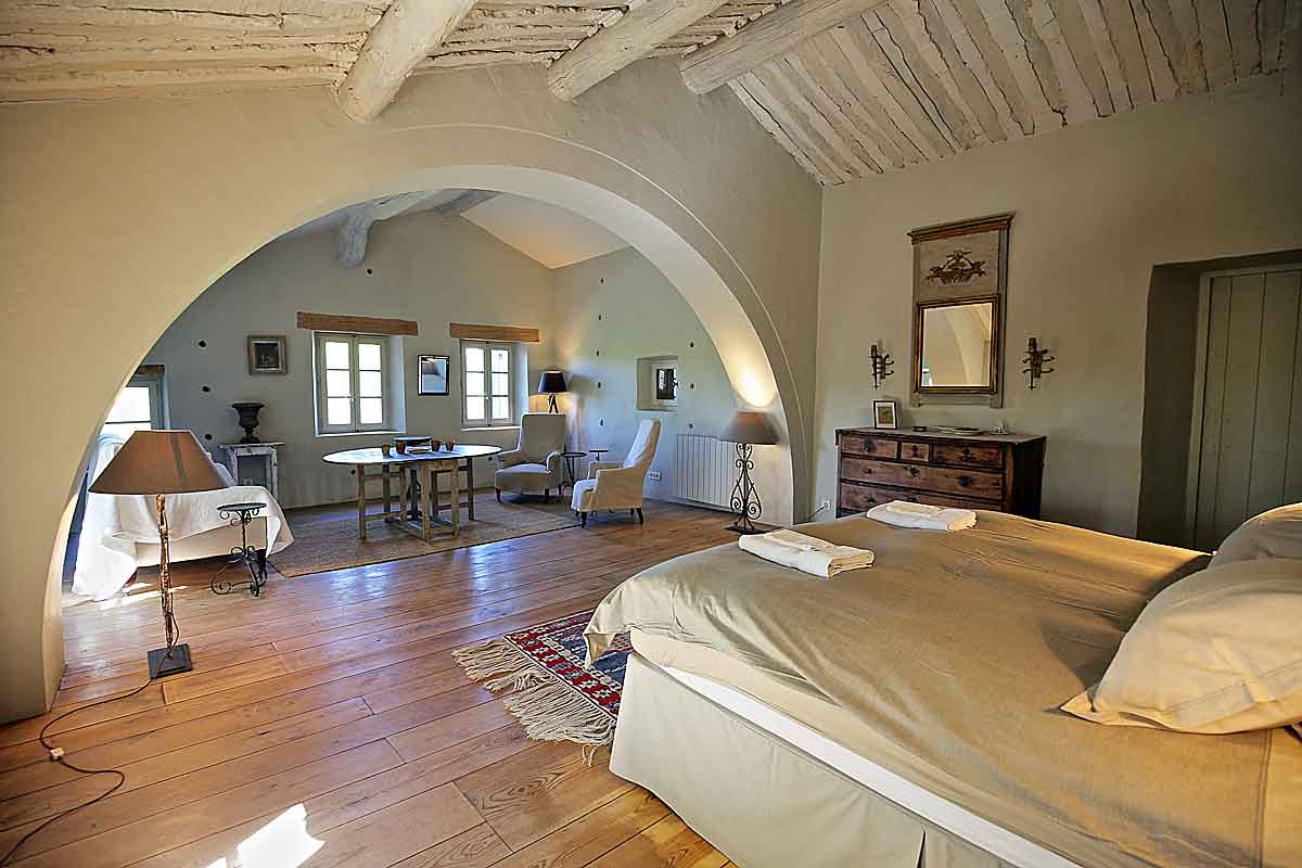 Provencal farm house near Gordes in the Luberon area of Provence, with Heated Pool, Tennis court, 6 bedrooms, 4 bathrooms, high end furnishings, Wifi. Set in 10 acres of garden, perfect for large family holidays in the South of France. Private setting, yet walking distance to restaurants.