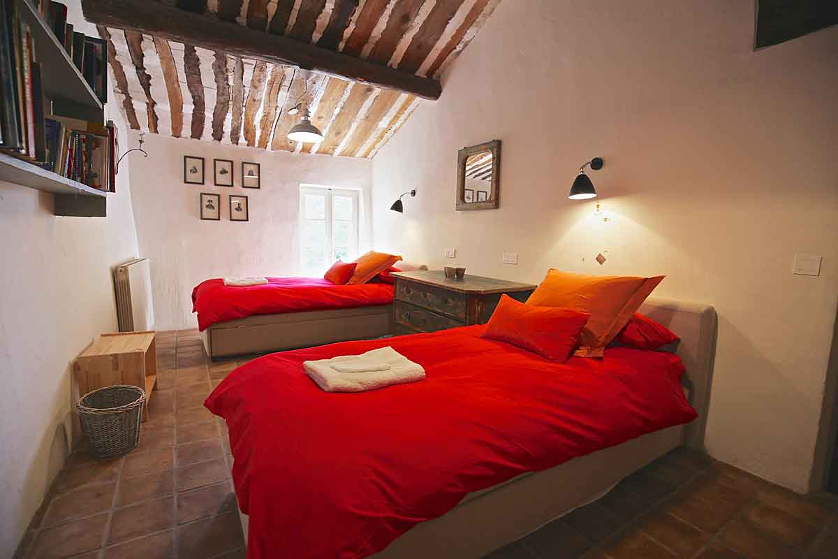 Bedroom 2 - Ground floor twin bedroom, French doors out to villa's garden/terrace.