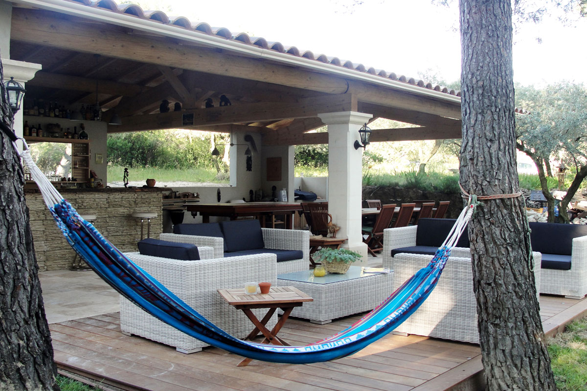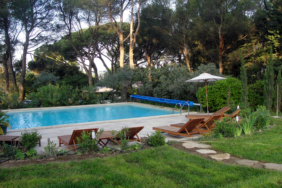 The 10m x 5m swimming pool with alarm is set within the large mature garden of around 4000m2, it has about 30 pines and 30 olive trees. It offers plenty of options for sitting out (or lazing in the hammock!) either in the shade of the fragrant pines or soaking up the sun on the poolside terrace. The terrace can be lit up at night and the pool itself has under-water lights.