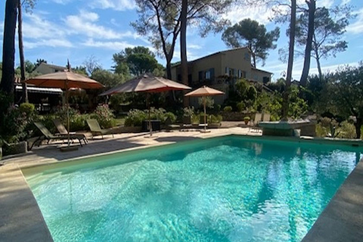 Large Holiday villa to rent in Provence, South of France to sleep 10. 3km from L'Isle-sur-la-Sorgue. It sleeps 10 - 8 in 4 bedrooms and 2 in the apartment, has air-conditioning, a 10m x 5m pool, a fabulous Pool House/games room and Summer Kitchen with bar area, all set in extensive gardens with mature pines.