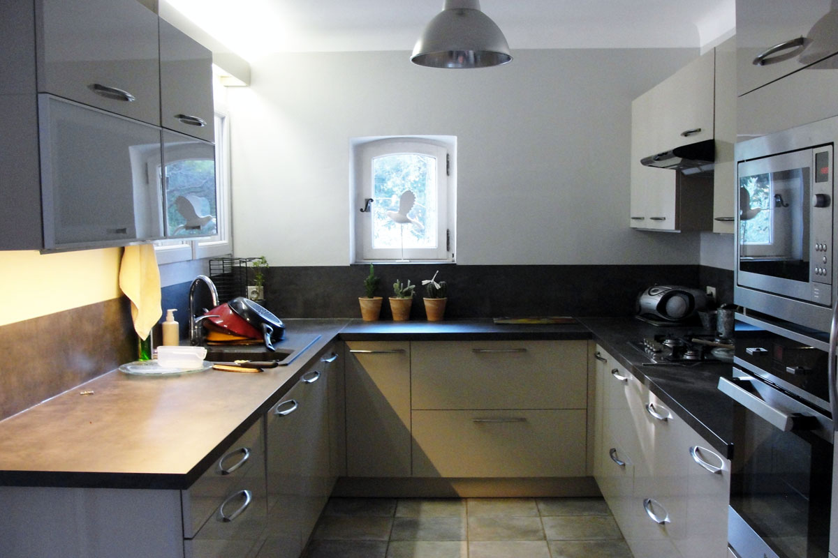 On the opposite side of the hall is a very well equipped kitchen, in the basement which is on the same level as the garden there is also a second kitchen, this is much more basic than the kitchen upstairs, but handy when one is dining outside by the pool for cool drinks and so on.