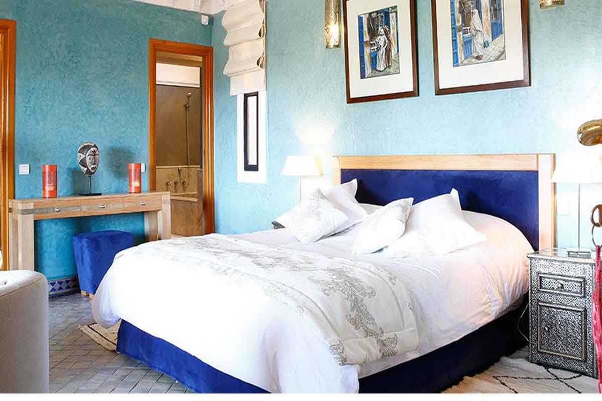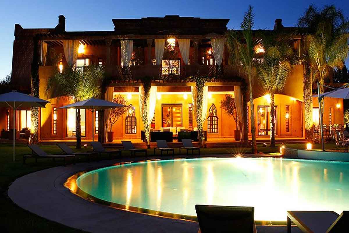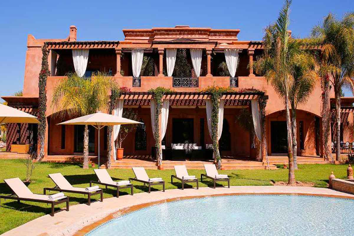 Superb Moroccan riad to rent with 6 bedrooms and 6 bathrooms. Deluxe Moroccan Holiday Villa sleeping 12 in 6 Suites each with an en suite, 2 swimming pools, private spa, air-con, Wi-Fi, housekeeping and 24 hour security.