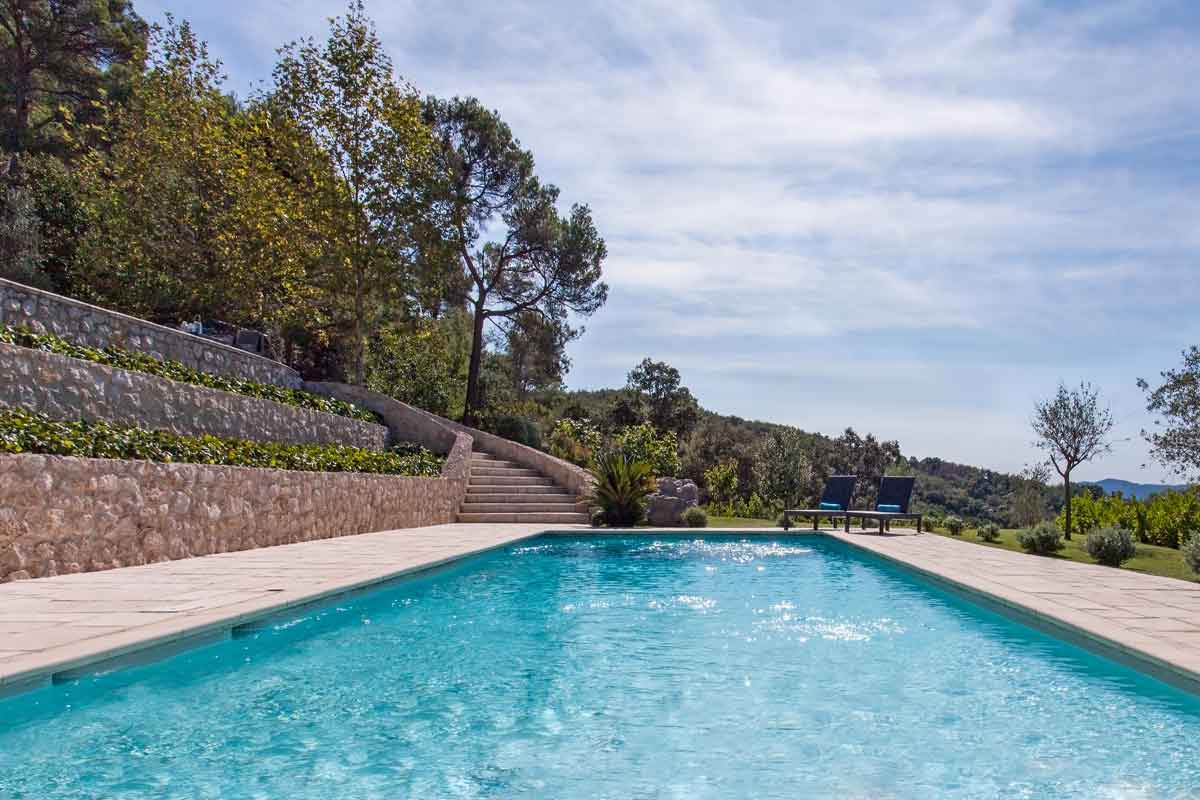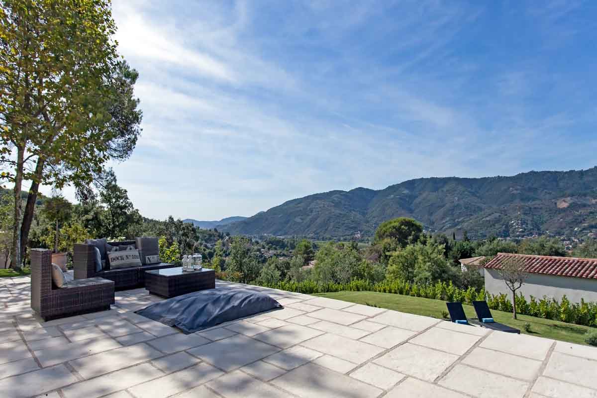 South of France Holiday Villa with stunning mountain views just over 10 km to the beaches and chic centre of Cannes. Beautiful villa with 4 large bedrooms, 2 bathrooms, fully air conditioned, good sized private pool, large Mediterranean garden and Wi-Fi.