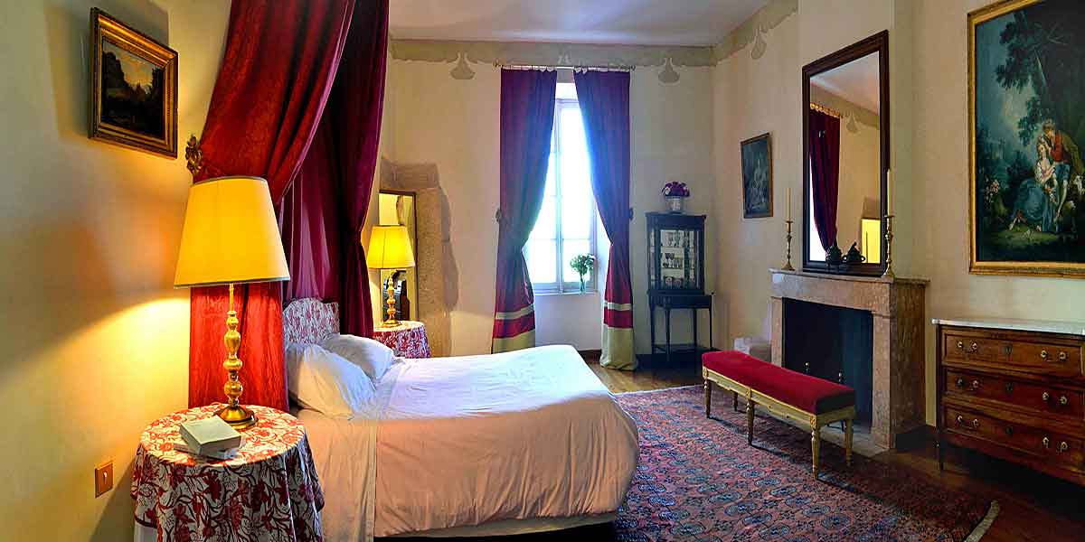 The accommodation is shared between the Chateau itself and an independent cottage: the chateau boasting 10 bedrooms and 6 bathrooms and the cottage 4 bedrooms and 2 bathrooms. Each bedroom has been beautifully decorated. Thought has gone into furnishings and artwork to create a special environment in which guests can rest. The cottage is very private with its own driveway and gates.