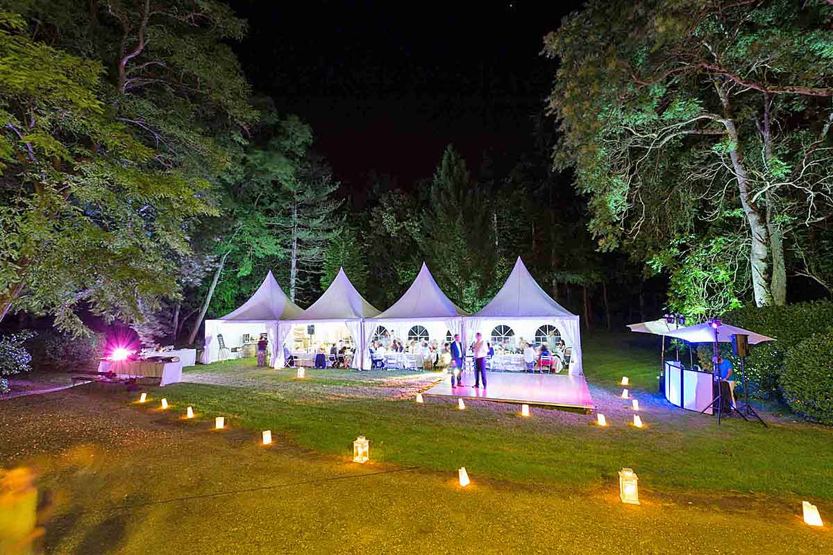 The Chateau and Cottage sit in 10 acres of parkland. With its trees and shrubs, lawns and avenues, it offers the freedom and space to choose the perfect place in which to celebrate a wedding, a gathering of friends or a family event. There is plenty of space for a marquee.
