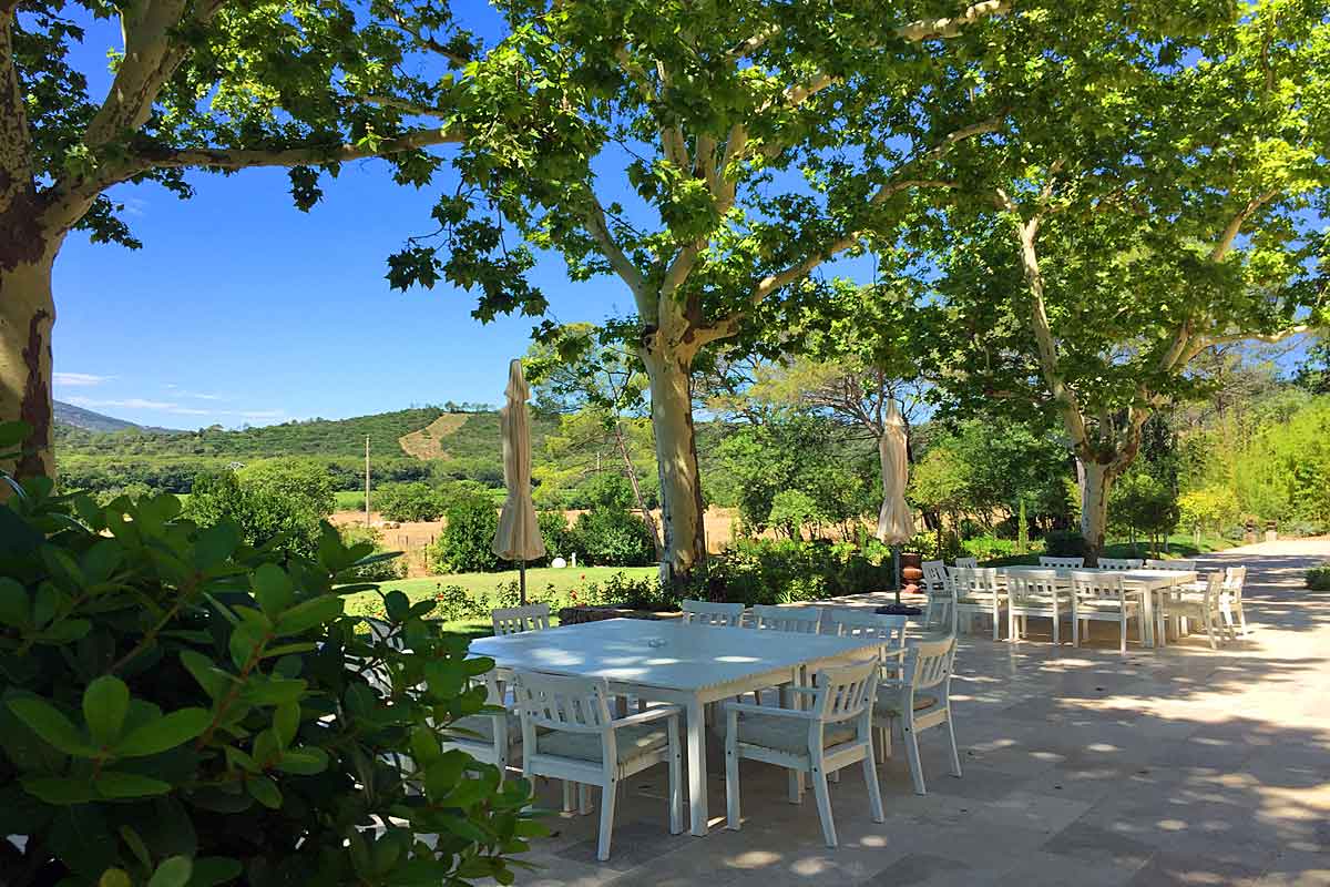 Numerous terraces of over 500m2 around the Chateau afford stunning views across the South of France countryside and vineyards, together with lots of casual seating opportunities. The huge BBQ has been incorporated into an original stone plinth and has a pergola for shade. There is a table for 20 to eat together close by - al fresco dining at its best.