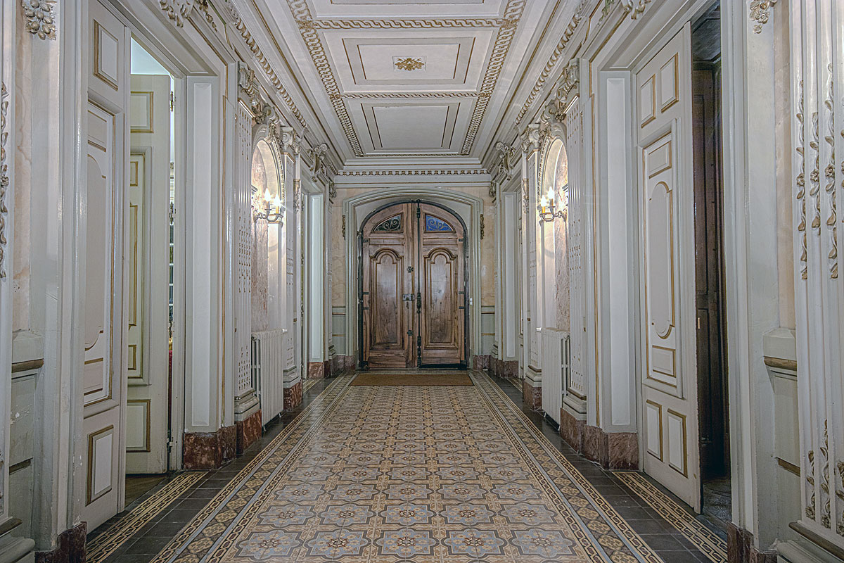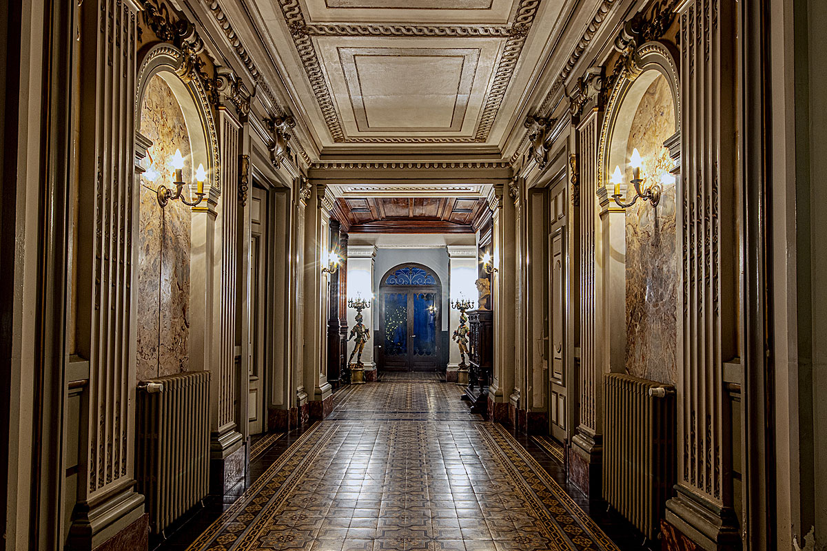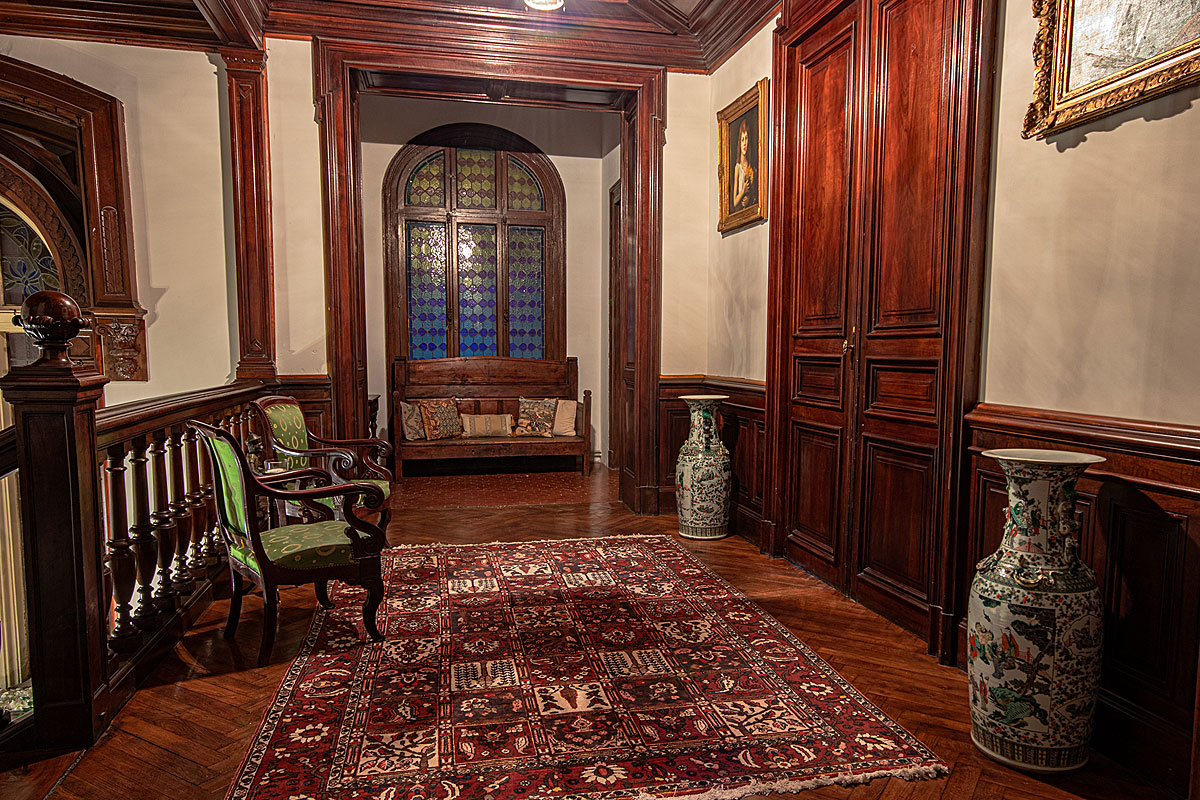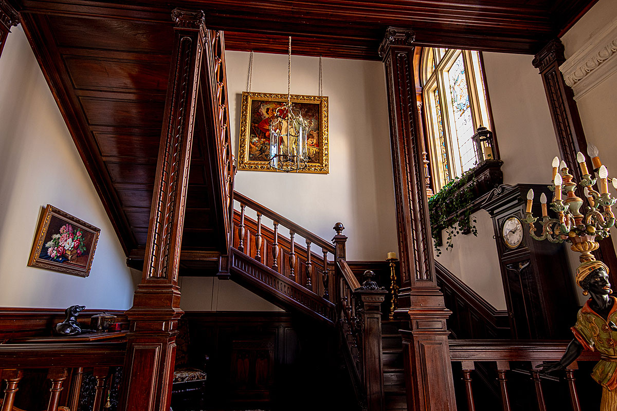 The spectacular oak doors open into the fabulous grand hallway, to the right through the original double doors is the large formal lounge with comfortable sofas and antiques. Doors lead through to the French style bureau which also has a door out to the hallway.