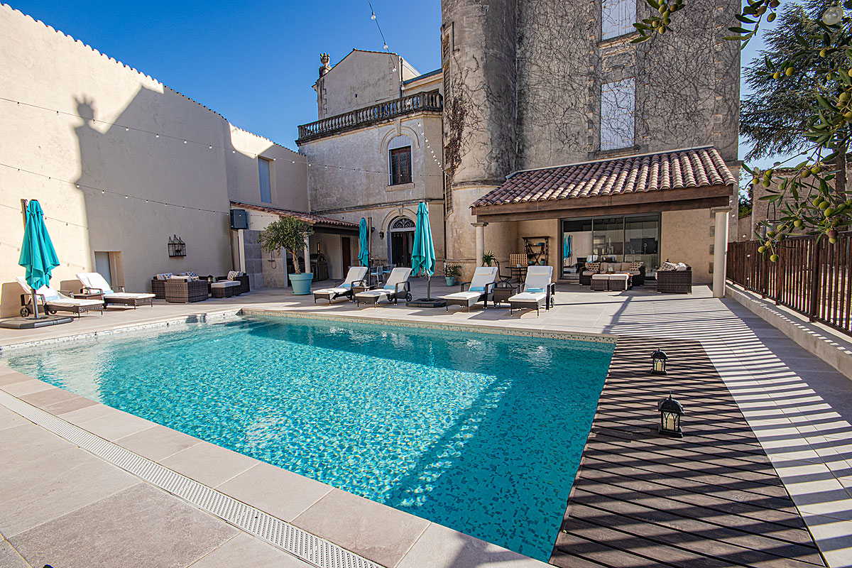 South of France Chateau, Magnificent 18th century chateau renovated to a very high standard. 8 bedrooms, 7 Bathrooms, air-con, pool, family friendly, beach 20 minute drive, walk to village with all amenities 10 minutes from Narbonne. 5 star rating from Étoiles de France . Taking 2026 bookings at 2025